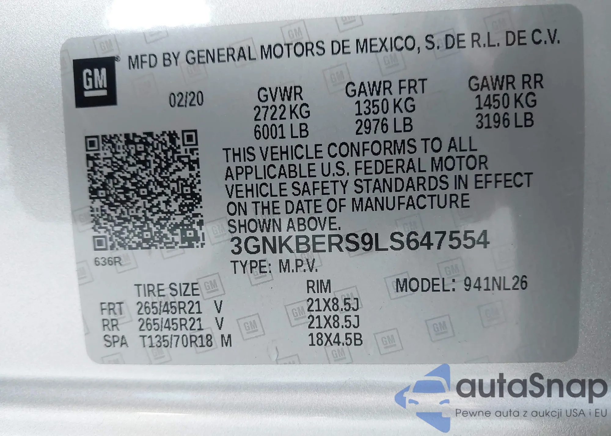 VIN: 3GNKBERS9LS647554