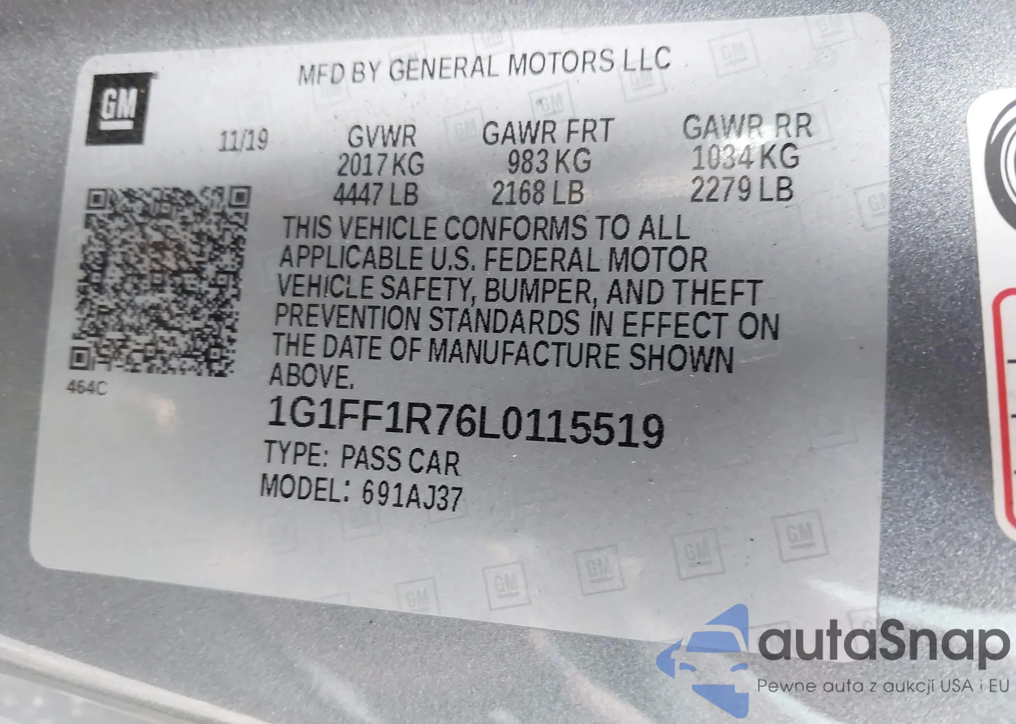 VIN: 1G1FF1R76L0115519
