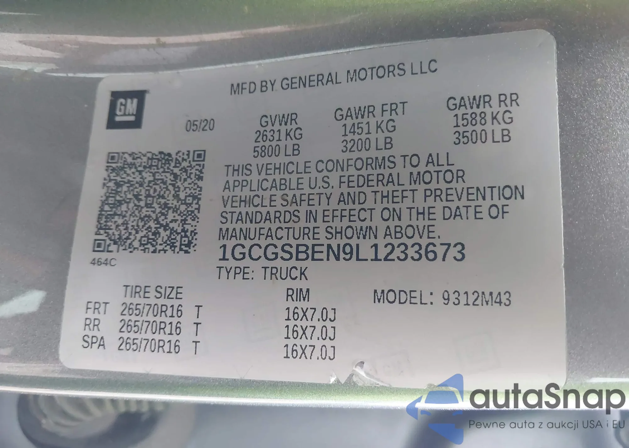 The car Chevrolet Colorado 2020 (VIN 1GCGSBEN9L1233673) has not been auctioned before. The documents are clean, and the mileage matches or is below the market average. Sold by an insurance company – we recommend purchase. Delivery to the port will take approx. 6–8 weeks.
