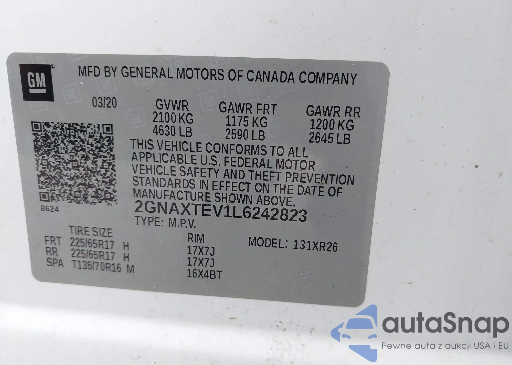 VIN: 2GNAXTEV1L6242823