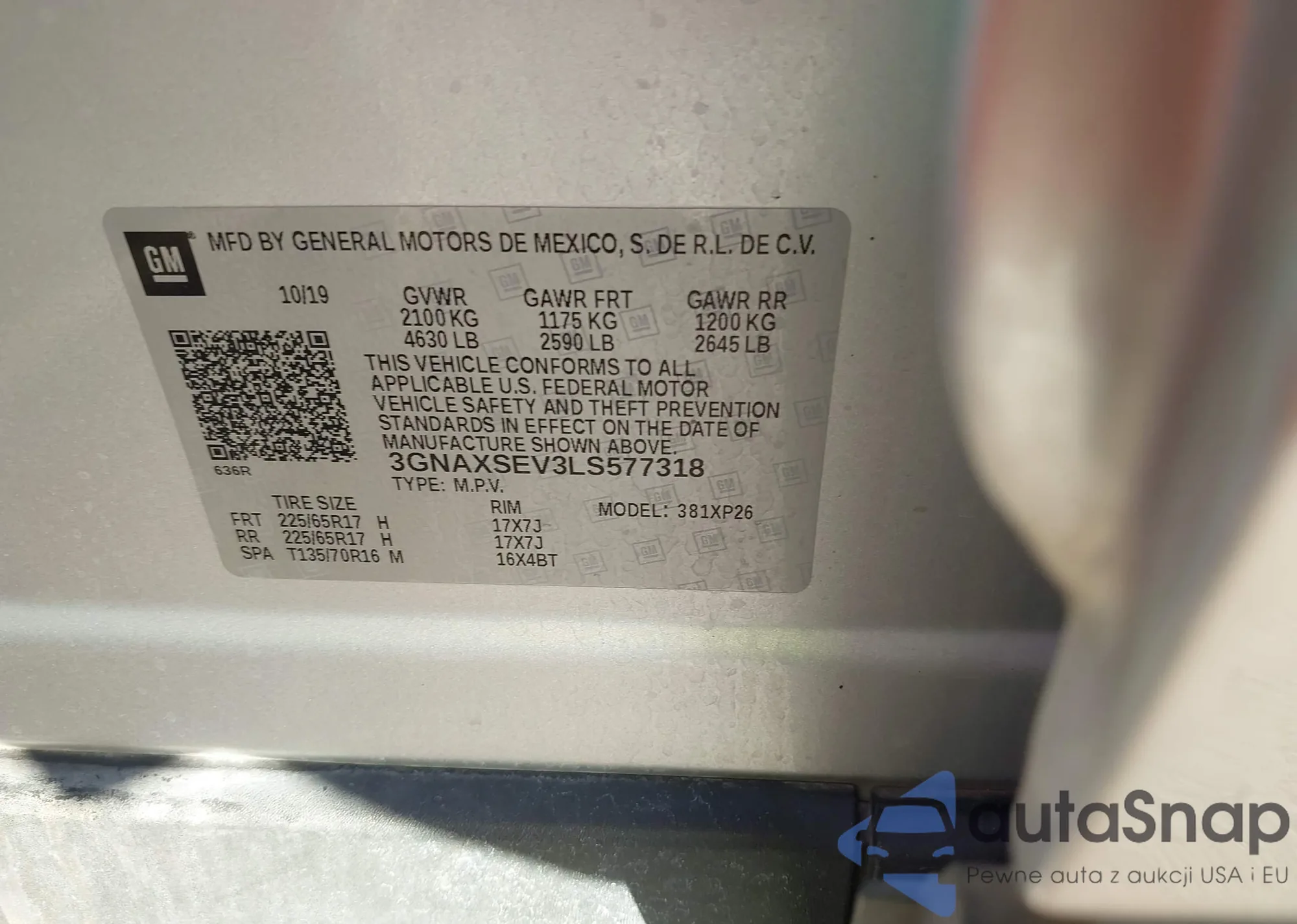 VIN: 3GNAXSEV3LS577318