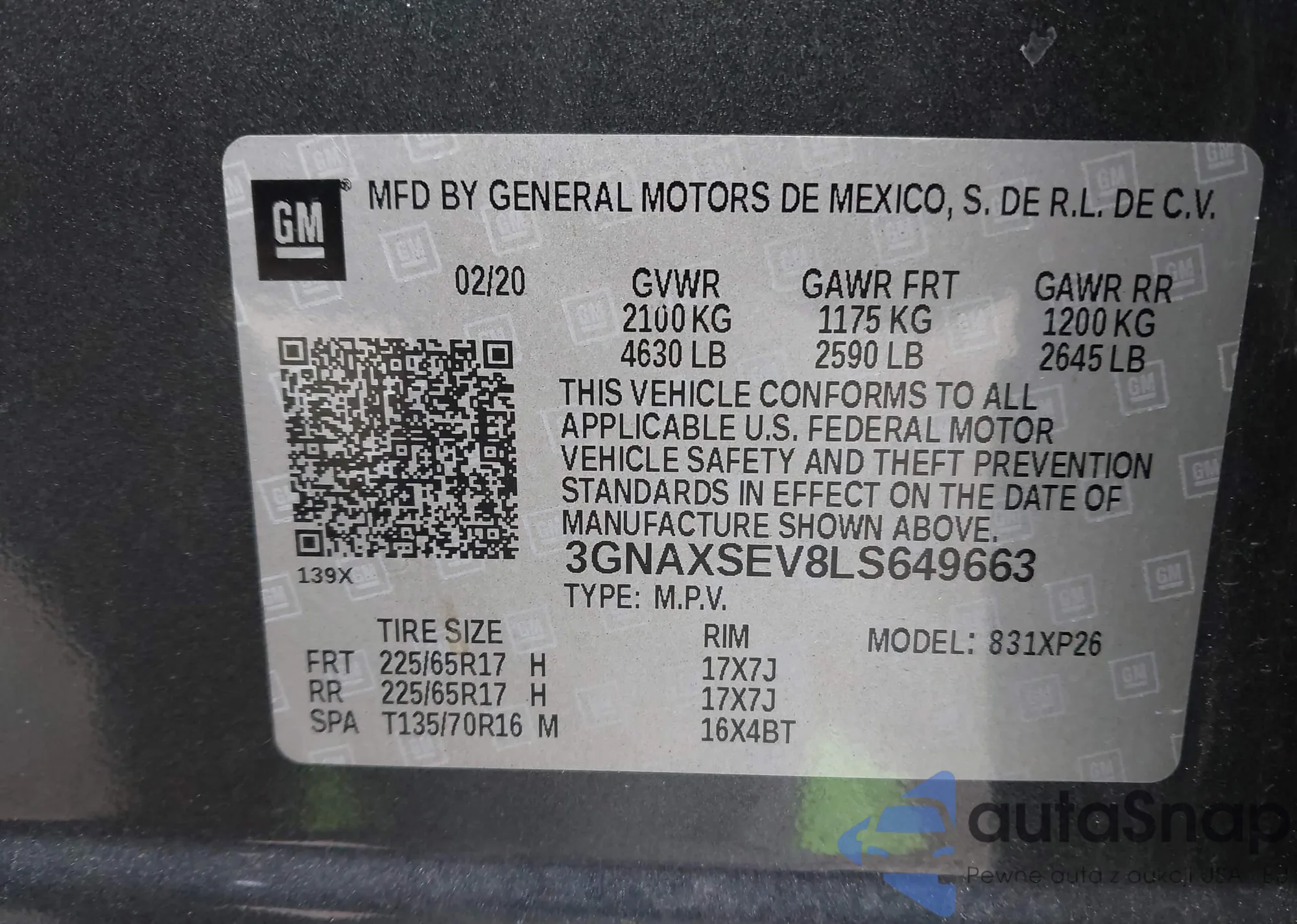 VIN: 3GNAXSEV8LS649663