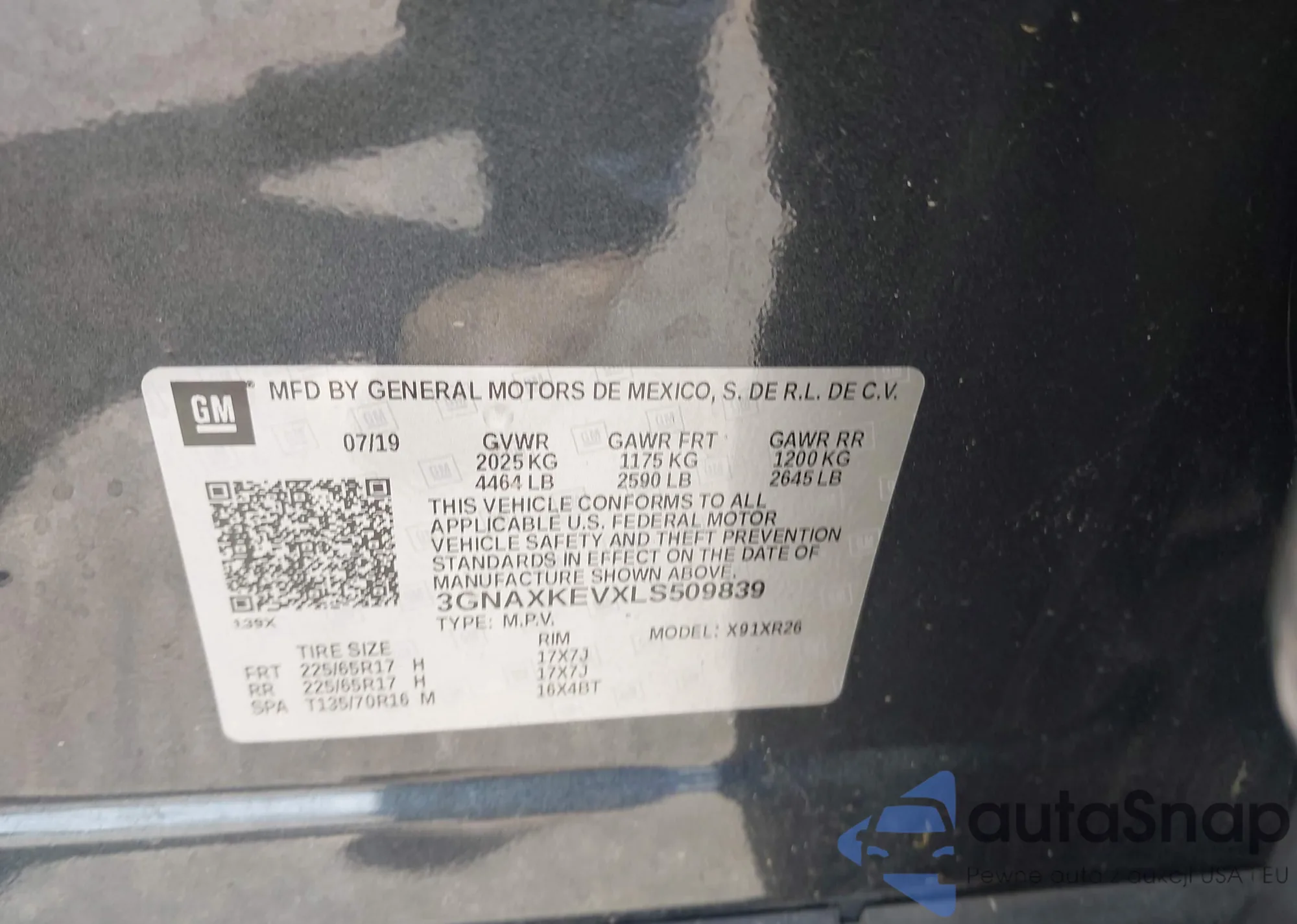 VIN: 3GNAXKEVXLS509839