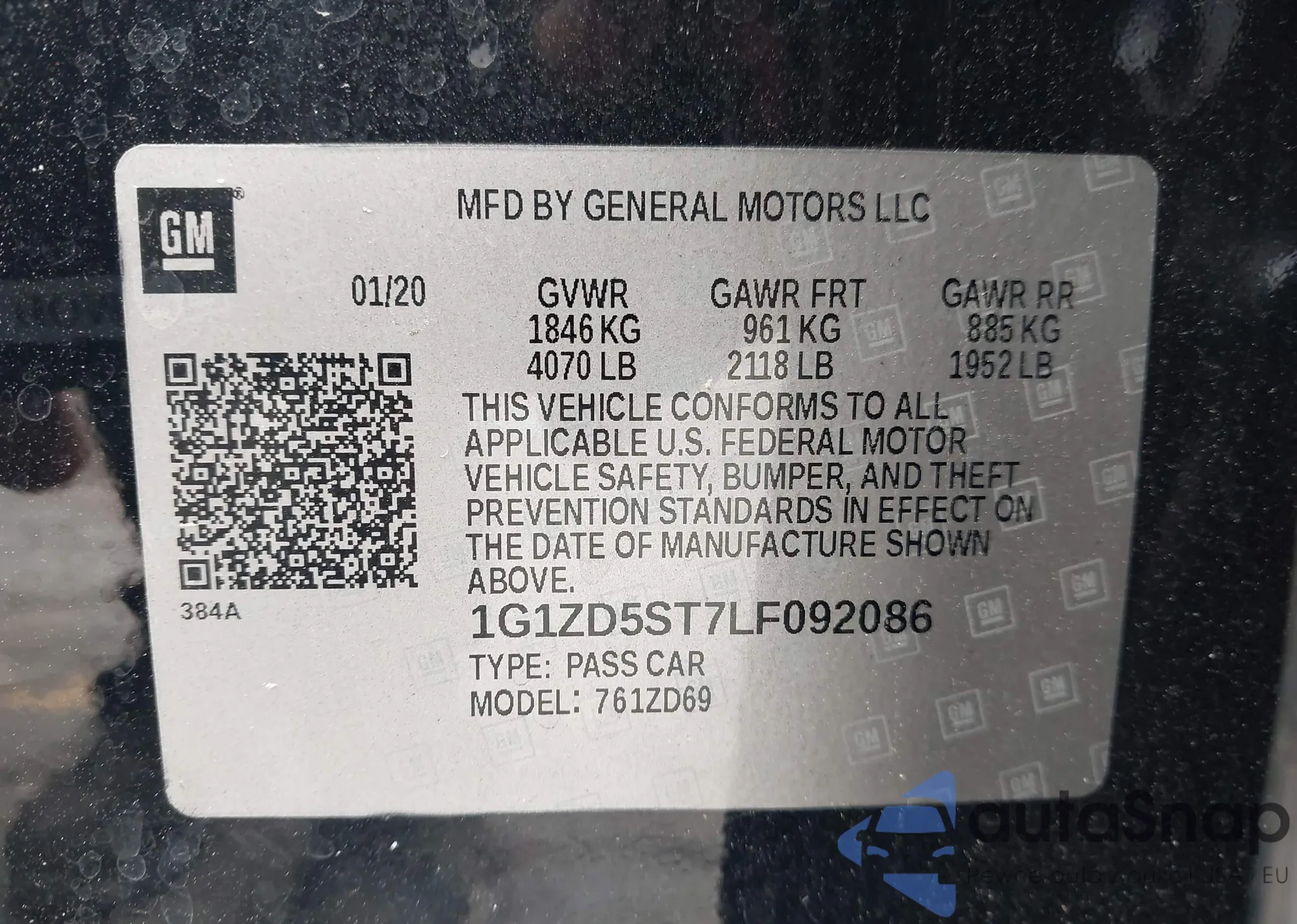 VIN: 1G1ZD5ST7LF092086