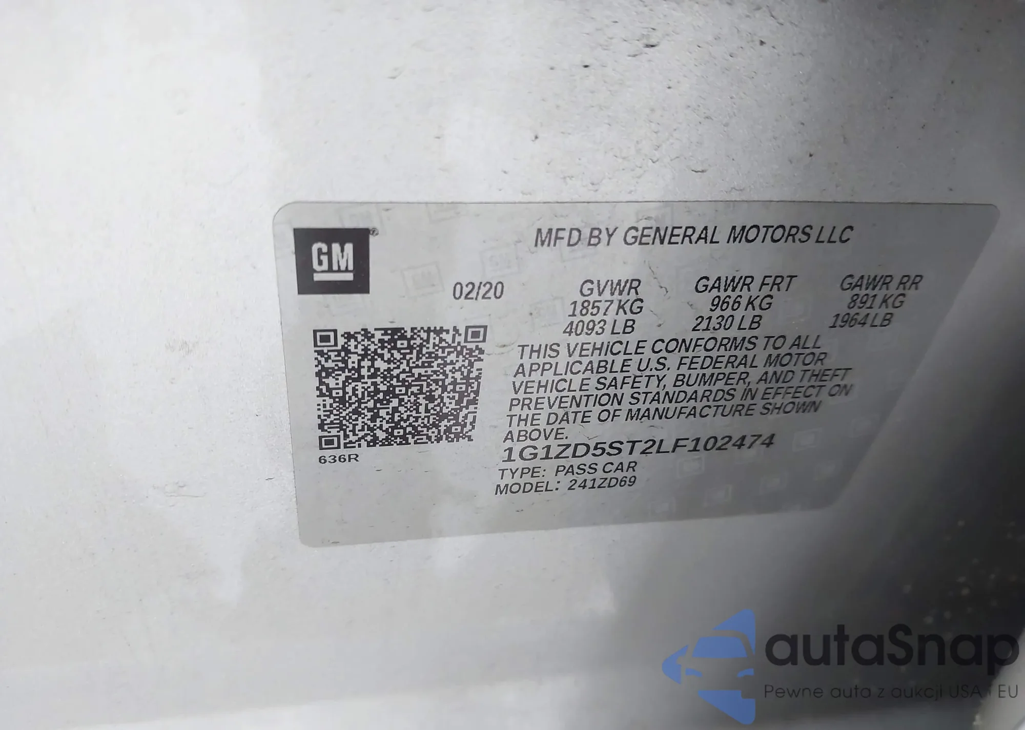 The car Chevrolet Malibu 2020 (VIN 1G1ZD5ST2LF102474) has documents that prevent registration. Export and registration may be difficult. Contact AutaSnap experts to find alternatives.