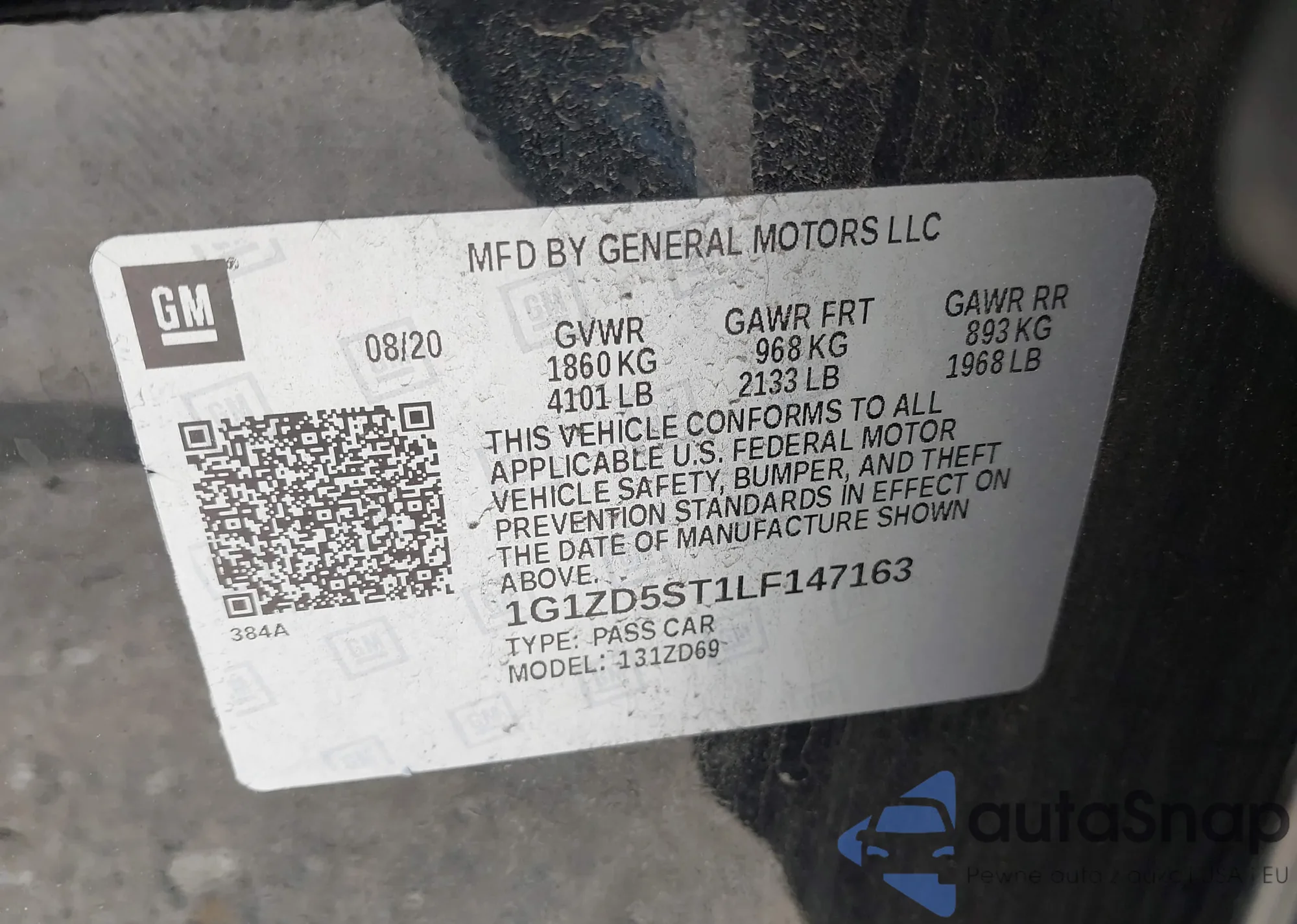 VIN: 1G1ZD5ST1LF147163