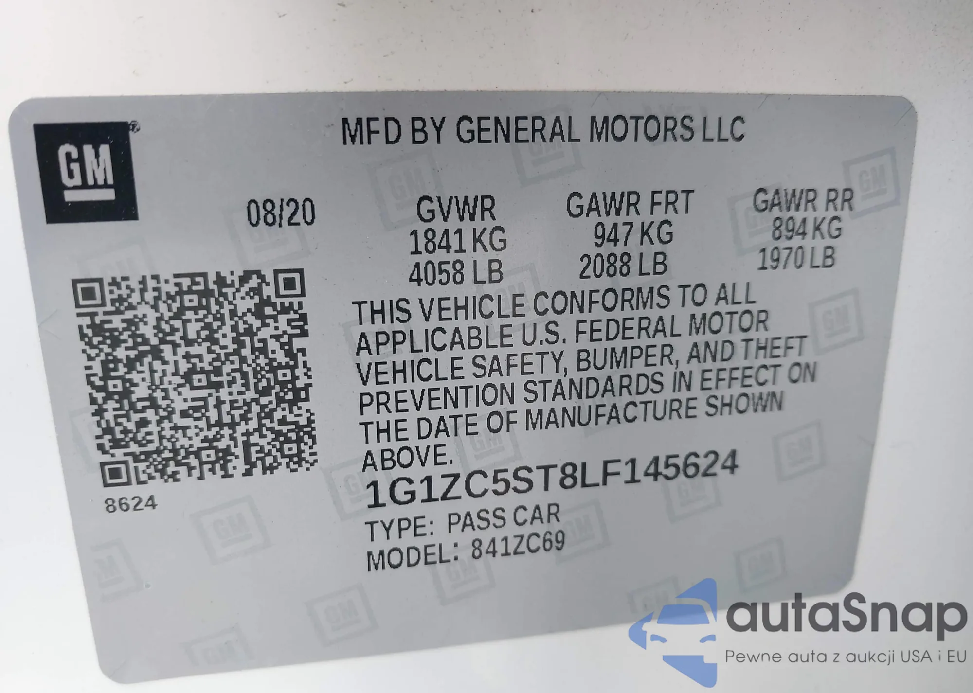 • VIN: 1G1ZC5ST8LF145624