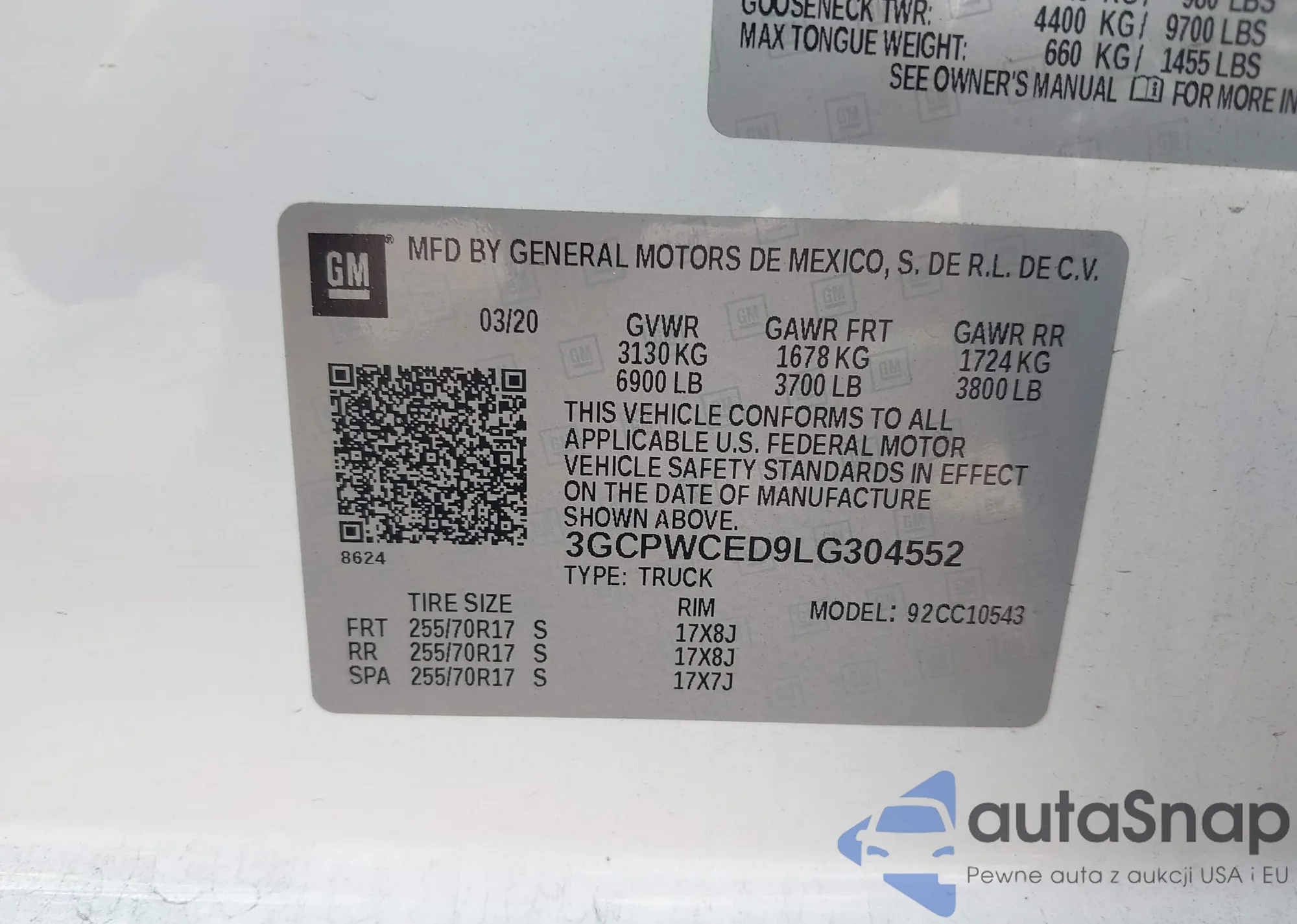 VIN: 3GCPWCED9LG304552