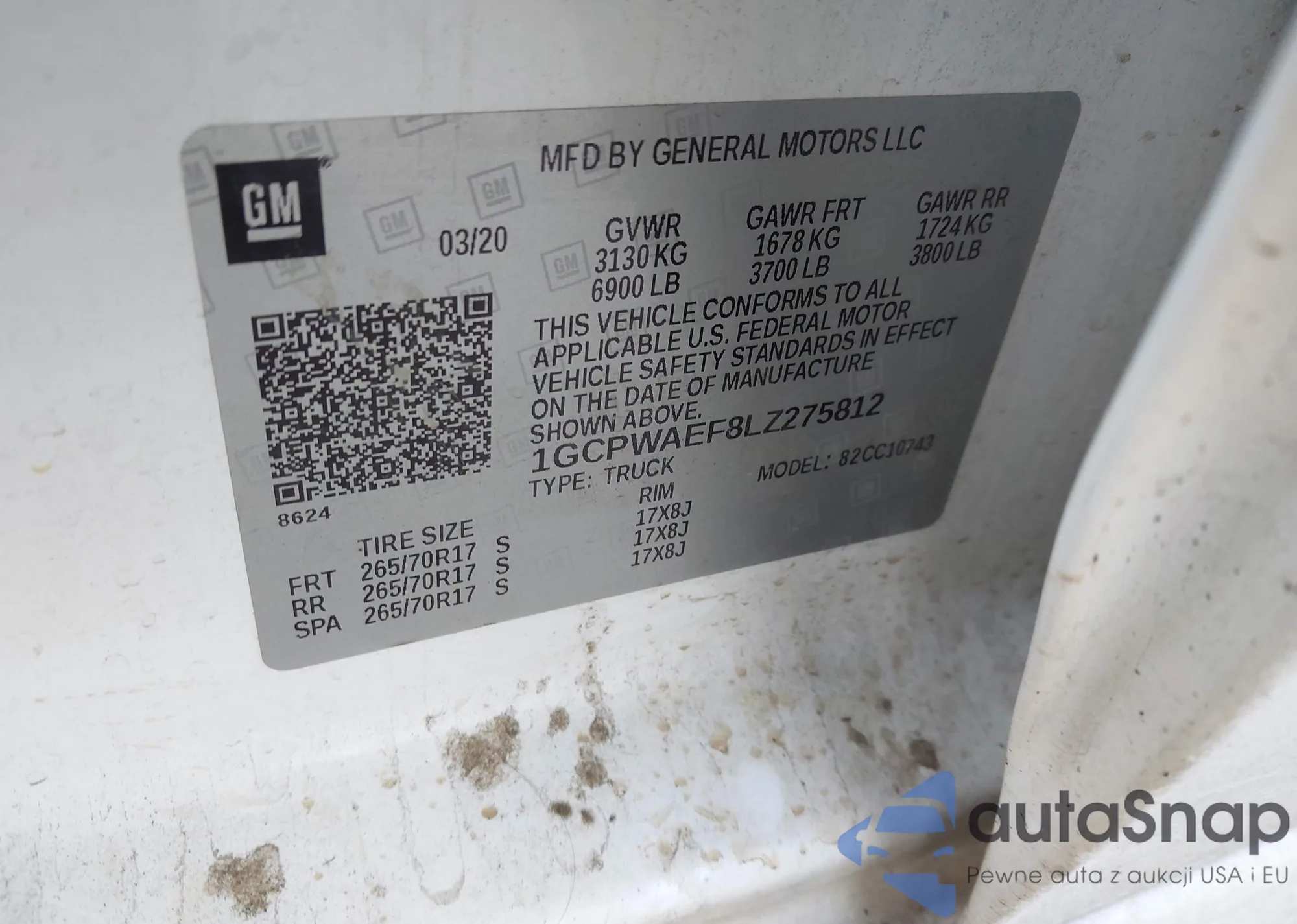 • VIN: 1GCPWAEF8LZ275812