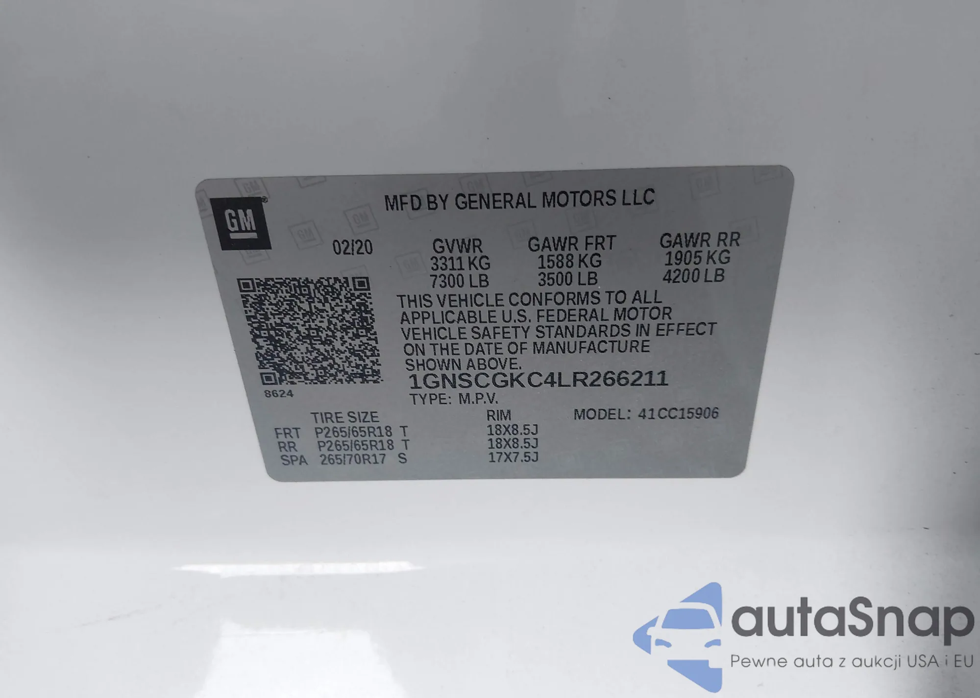 VIN: 1GNSCGKC4LR266211