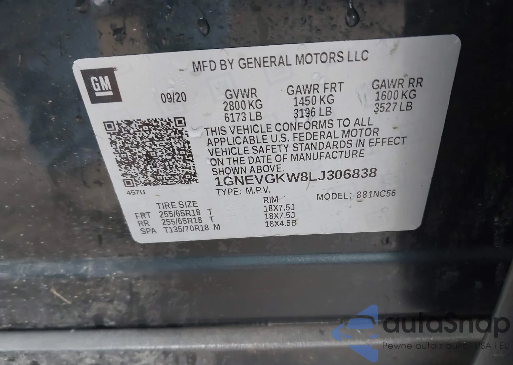 VIN: 1GNEVGKW8LJ306838