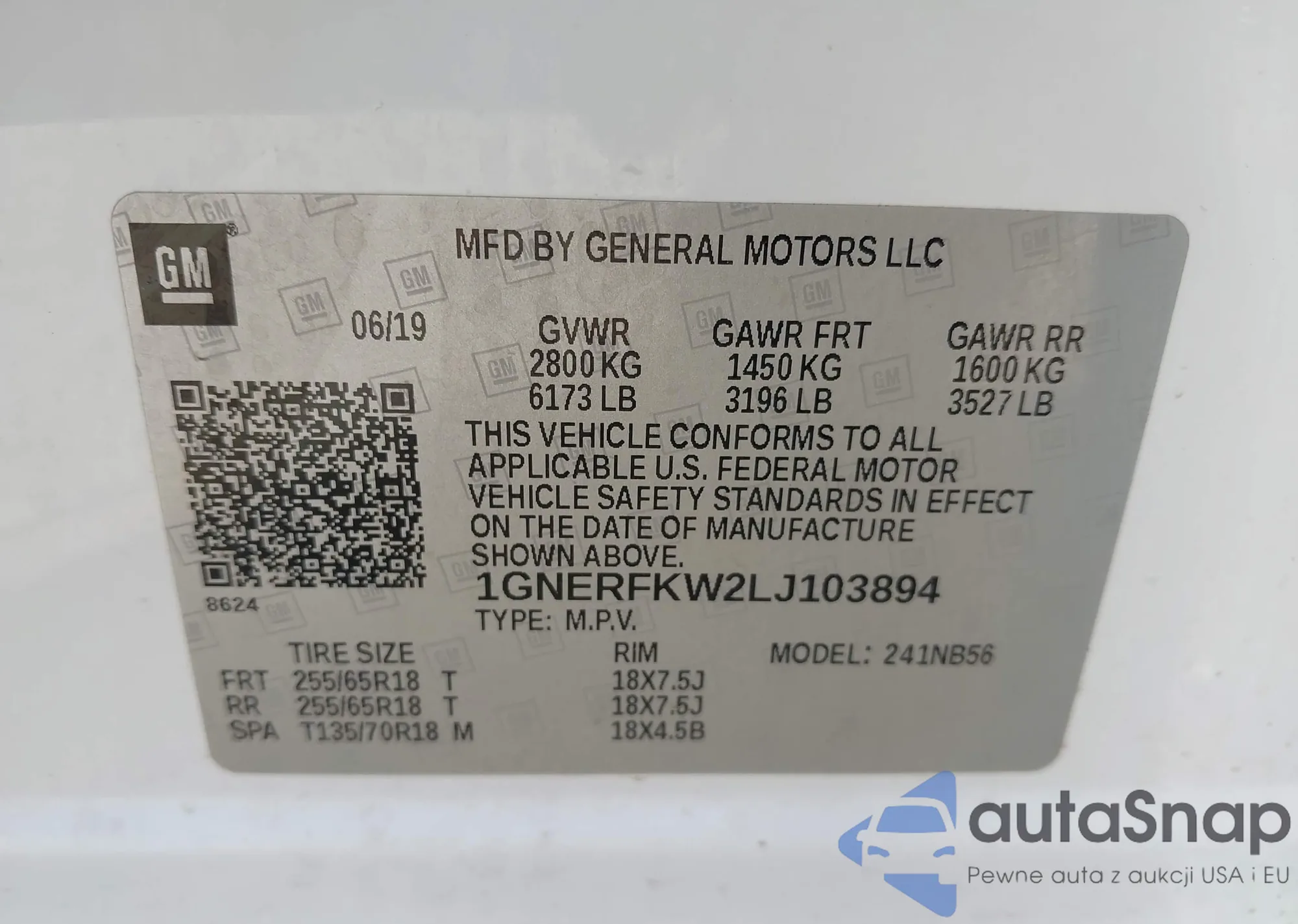 VIN: 1GNERFKW2LJ103894