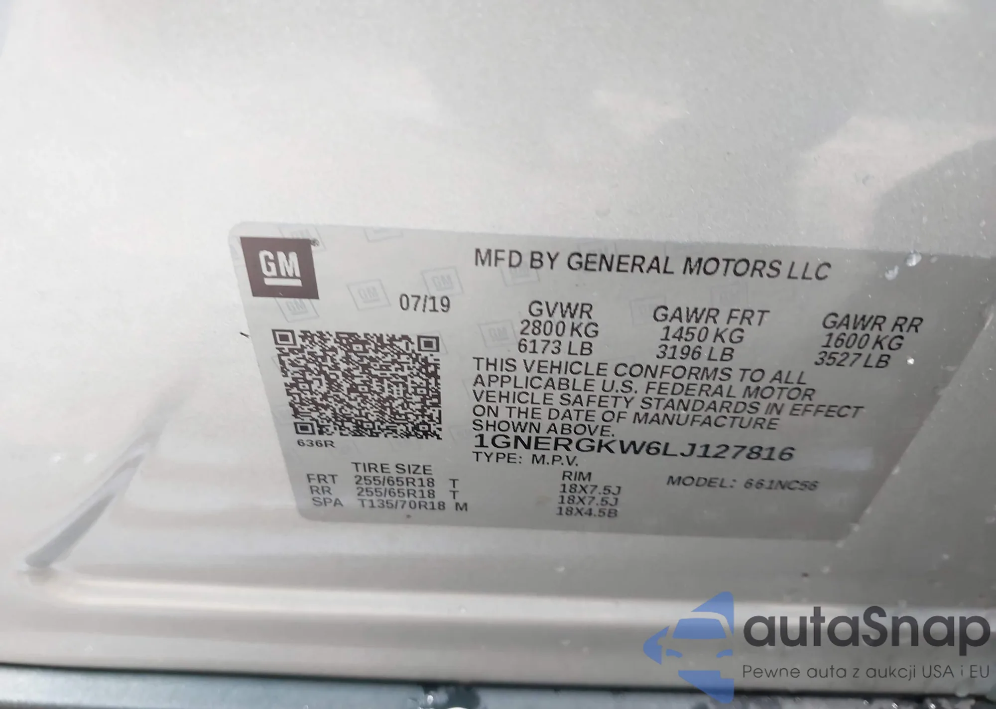 VIN: 1GNERGKW6LJ127816