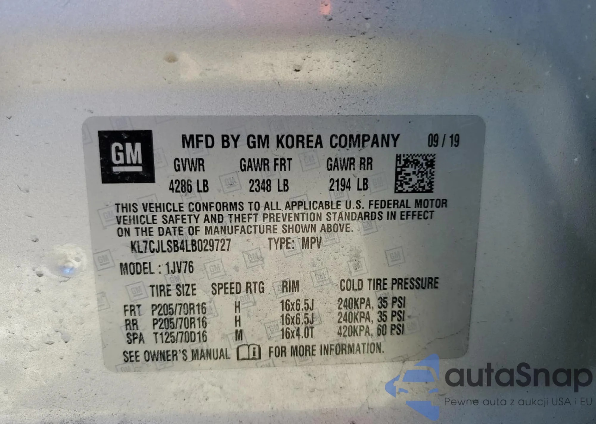 VIN: KL7CJLSB4LB029727