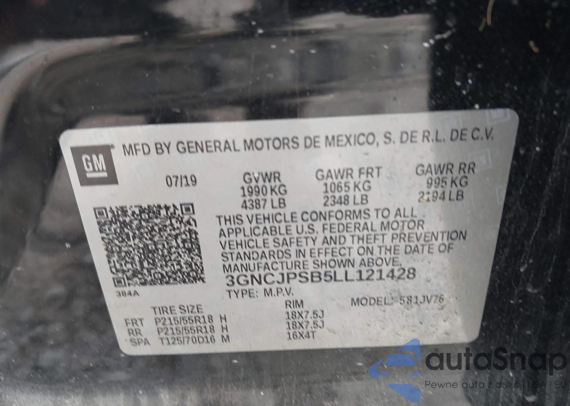 VIN: 3GNCJPSB5LL121428