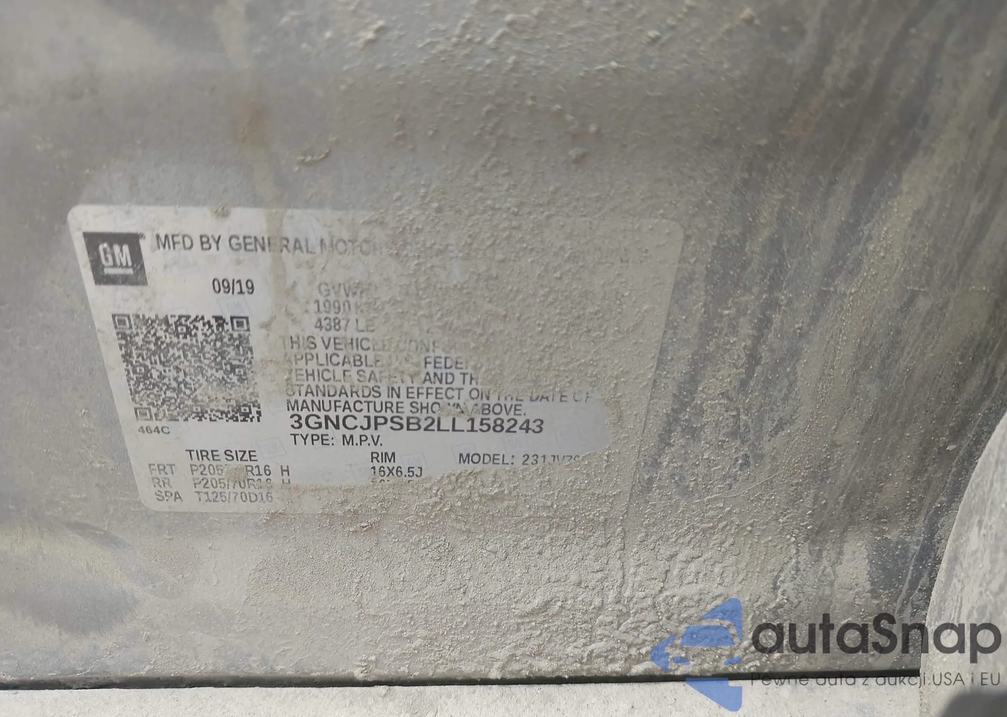 VIN: 3GNCJPSB2LL158243