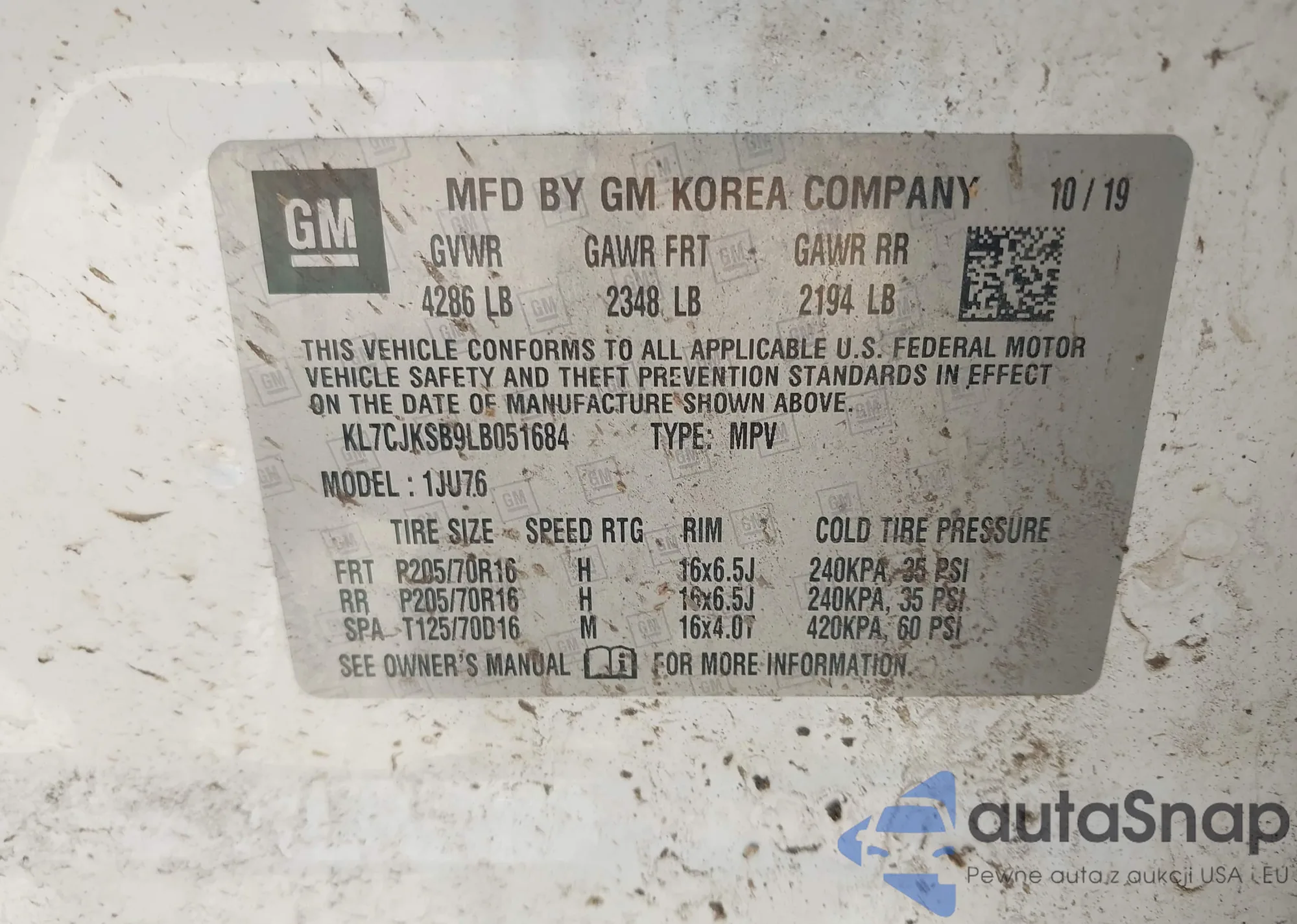VIN: KL7CJKSB9LB051684