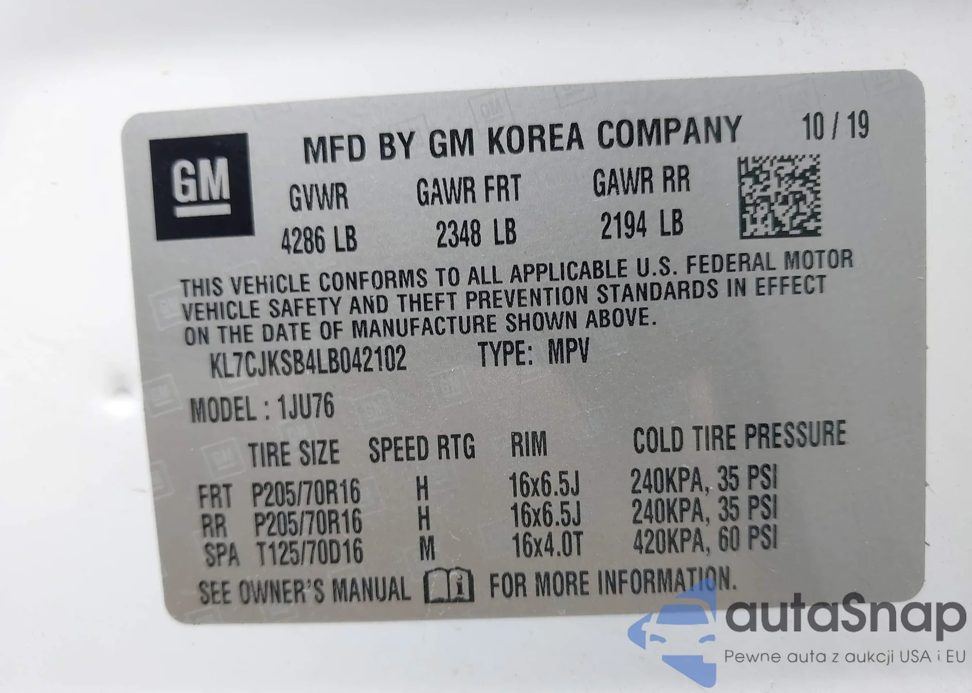 VIN: KL7CJKSB4LB042102