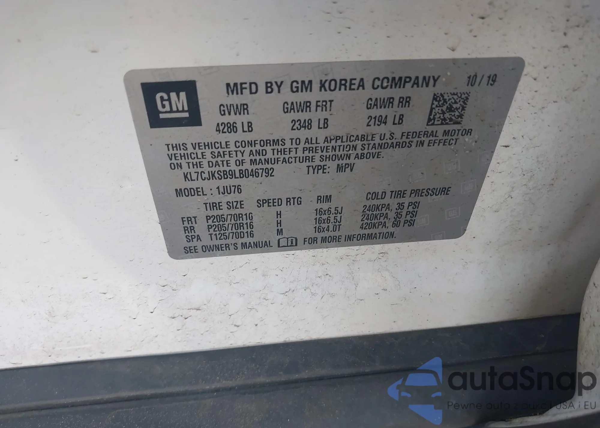 VIN: KL7CJKSB9LB046792