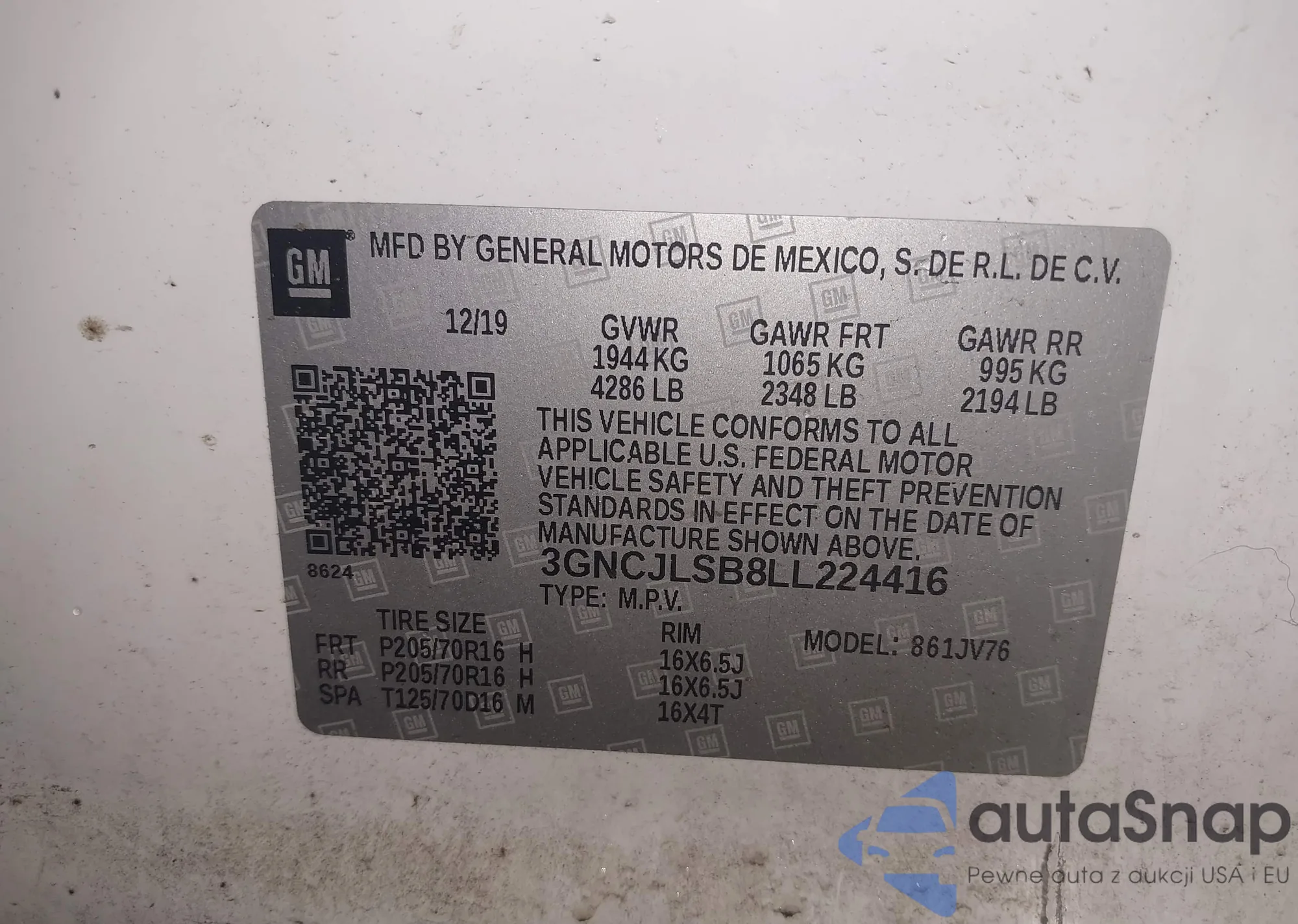 VIN: 3GNCJLSB8LL224416
