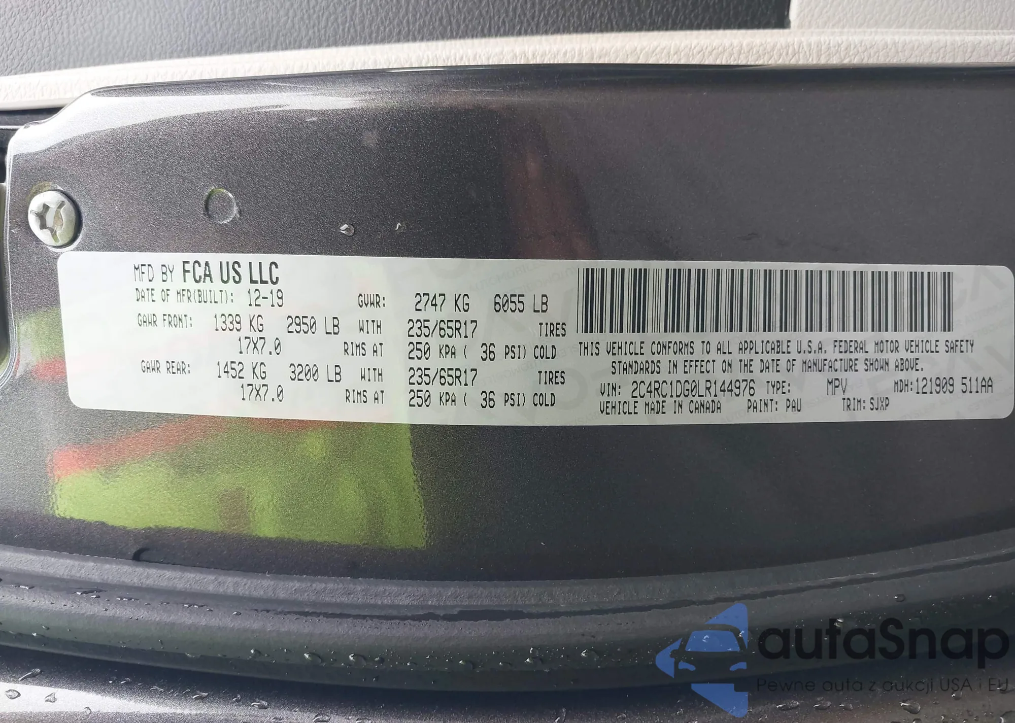 The car Chrysler Voyager 2020 (VIN 2C4RC1DG0LR144976) has not been auctioned before. The documents are clean, and the mileage matches or is below the market average. Sold by an insurance company – we recommend purchase. Delivery to the port will take approx. 6–8 weeks.
