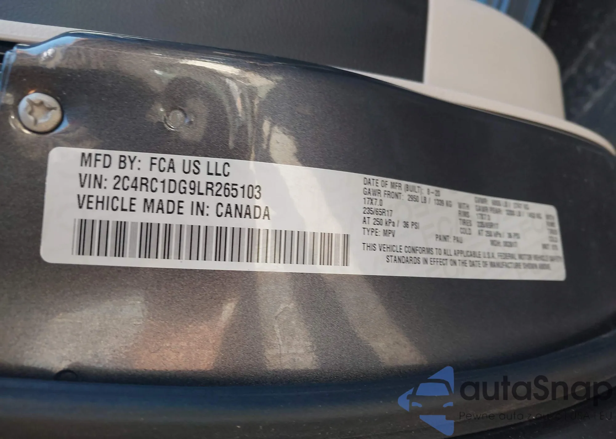 • VIN: 2C4RC1DG9LR265103