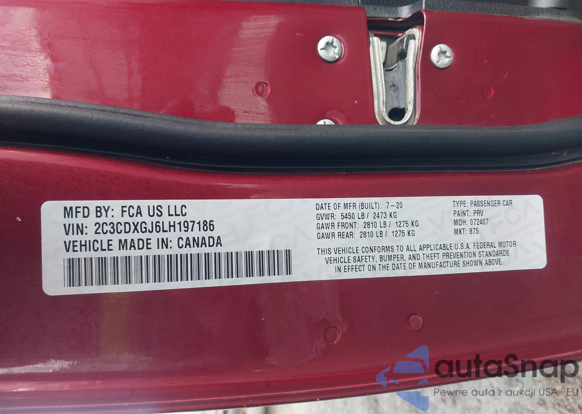 VIN: 2C3CDXGJ6LH197186