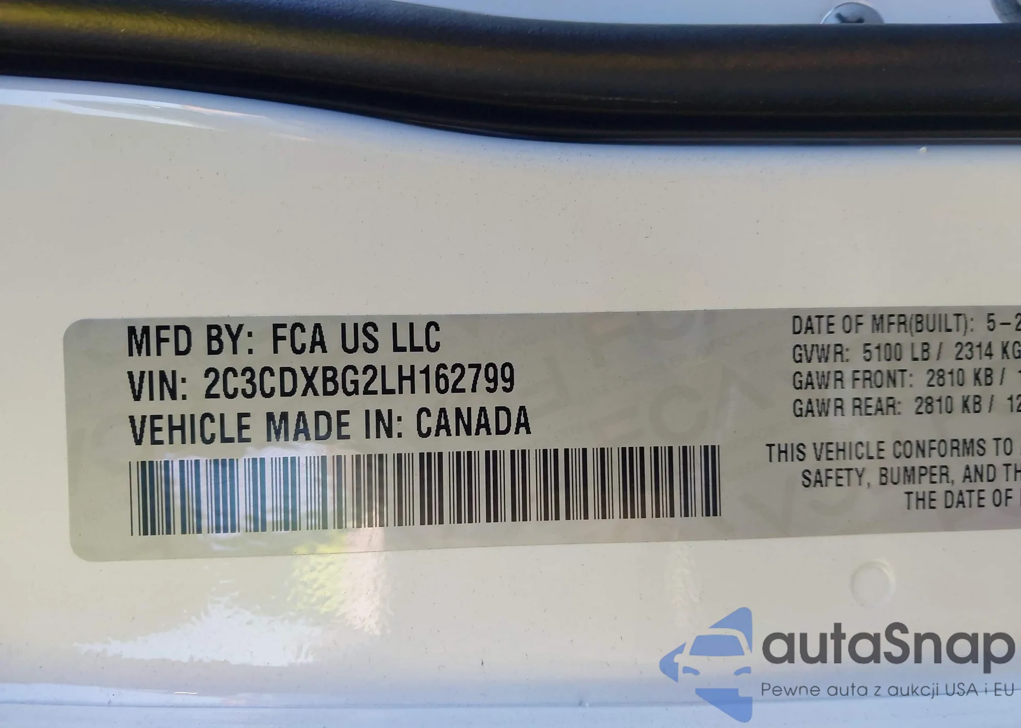 The car Dodge Charger 2020 (VIN 2C3CDXBG2LH162799) has not been auctioned before. The documents are clean, and the mileage matches or is below the market average. Sold by an insurance company – we recommend purchase. Delivery to the port will take approx. 6–8 weeks.
