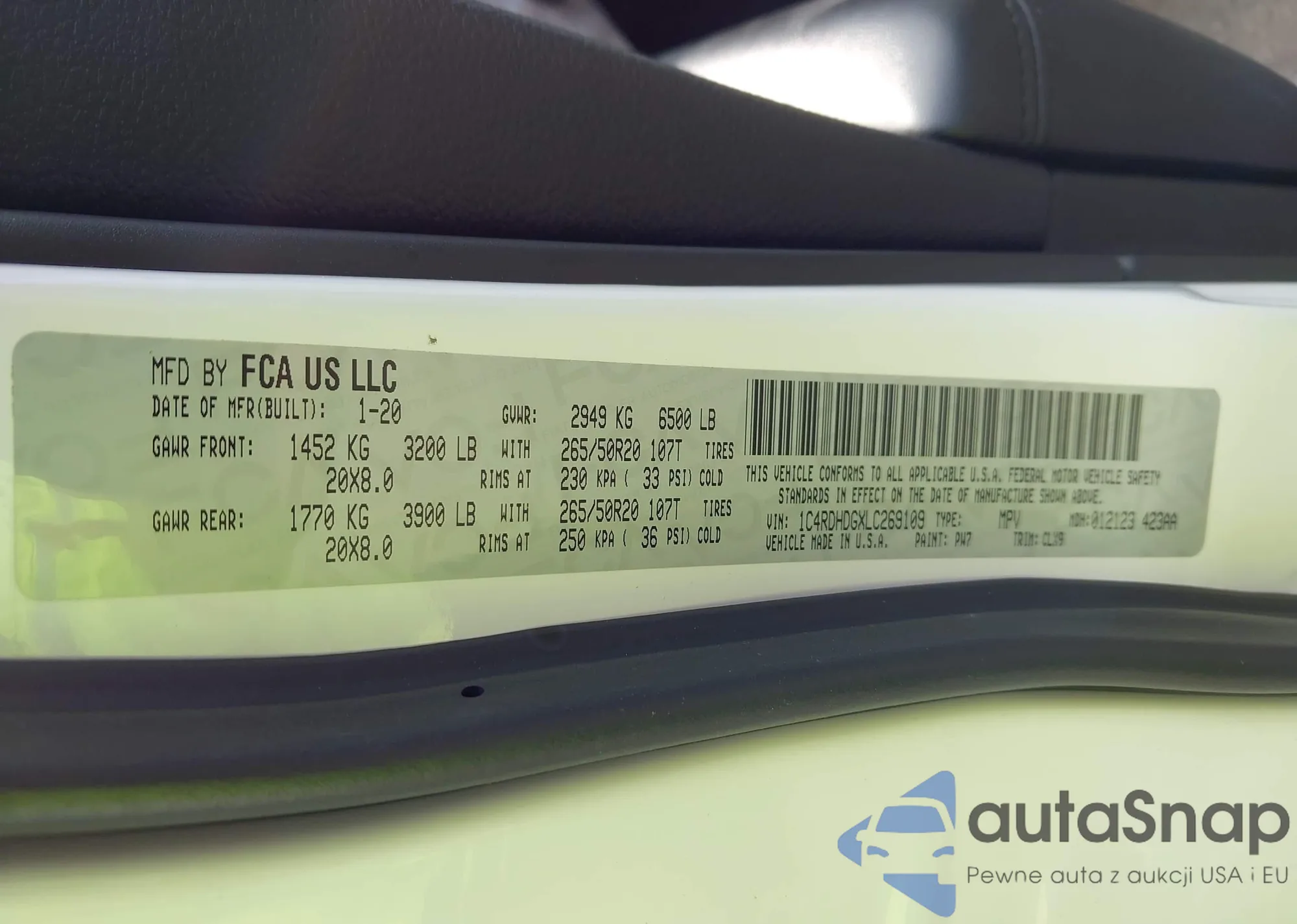 VIN: 1C4RDHDGXLC269109