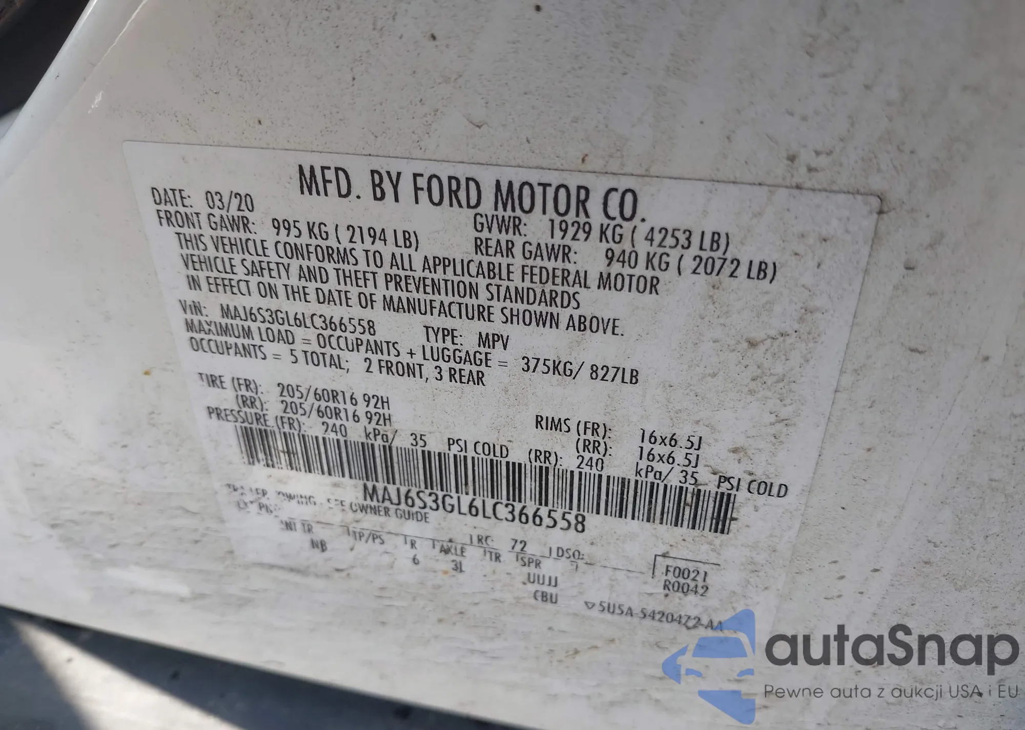 VIN: MAJ6S3GL6LC366558