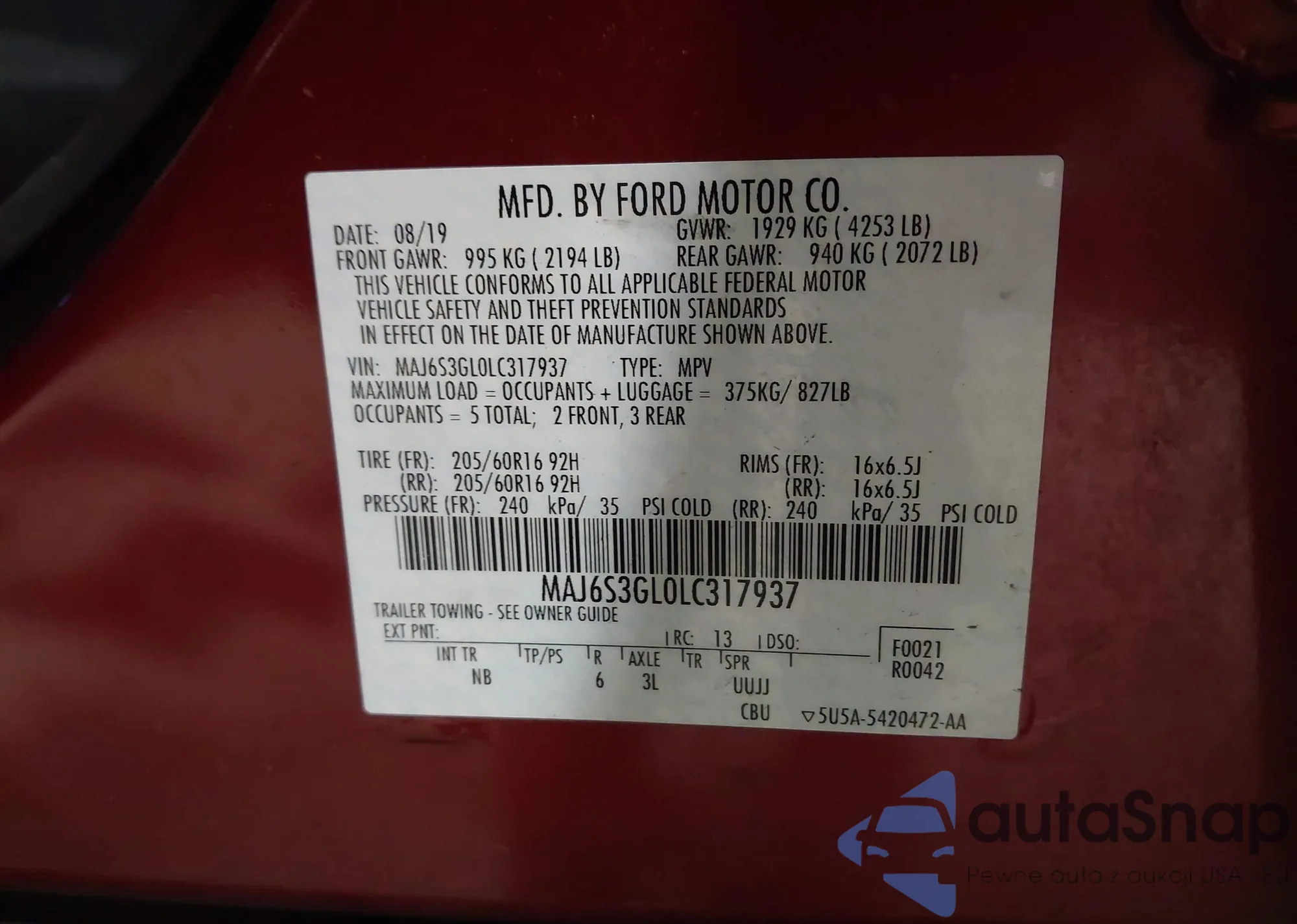 VIN: MAJ6S3GL0LC317937