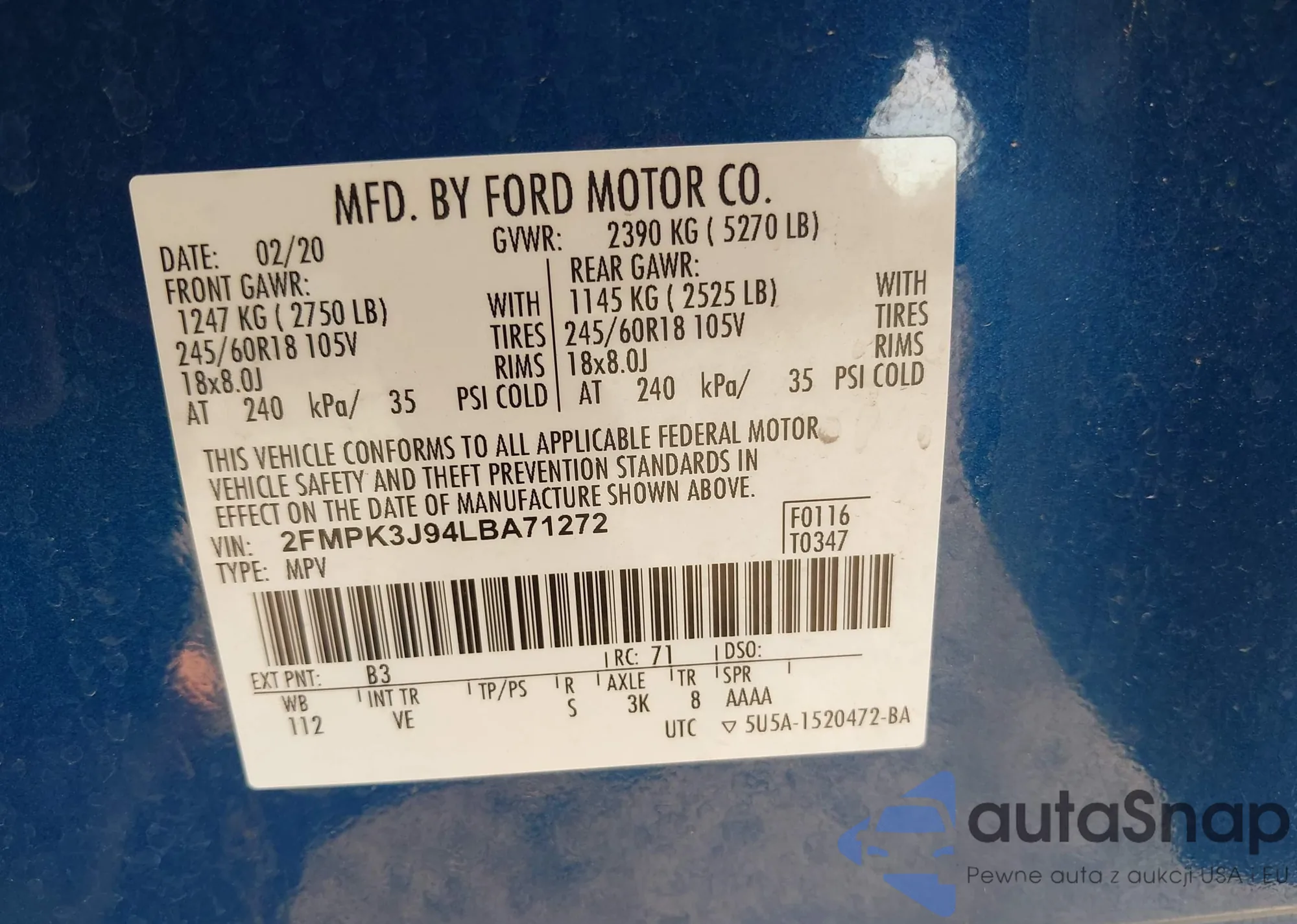 VIN: 2FMPK3J94LBA71272