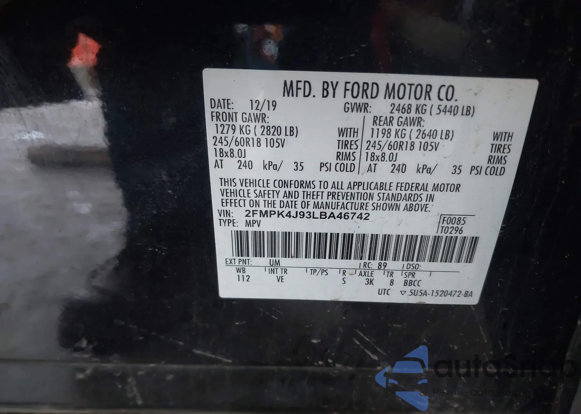 VIN: 2FMPK4J93LBA46742