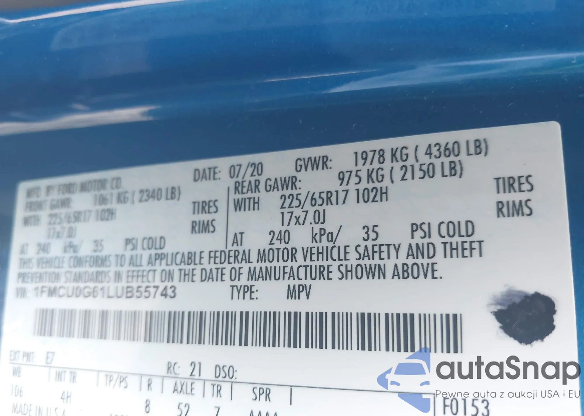 VIN: 1FMCU0G61LUB55743