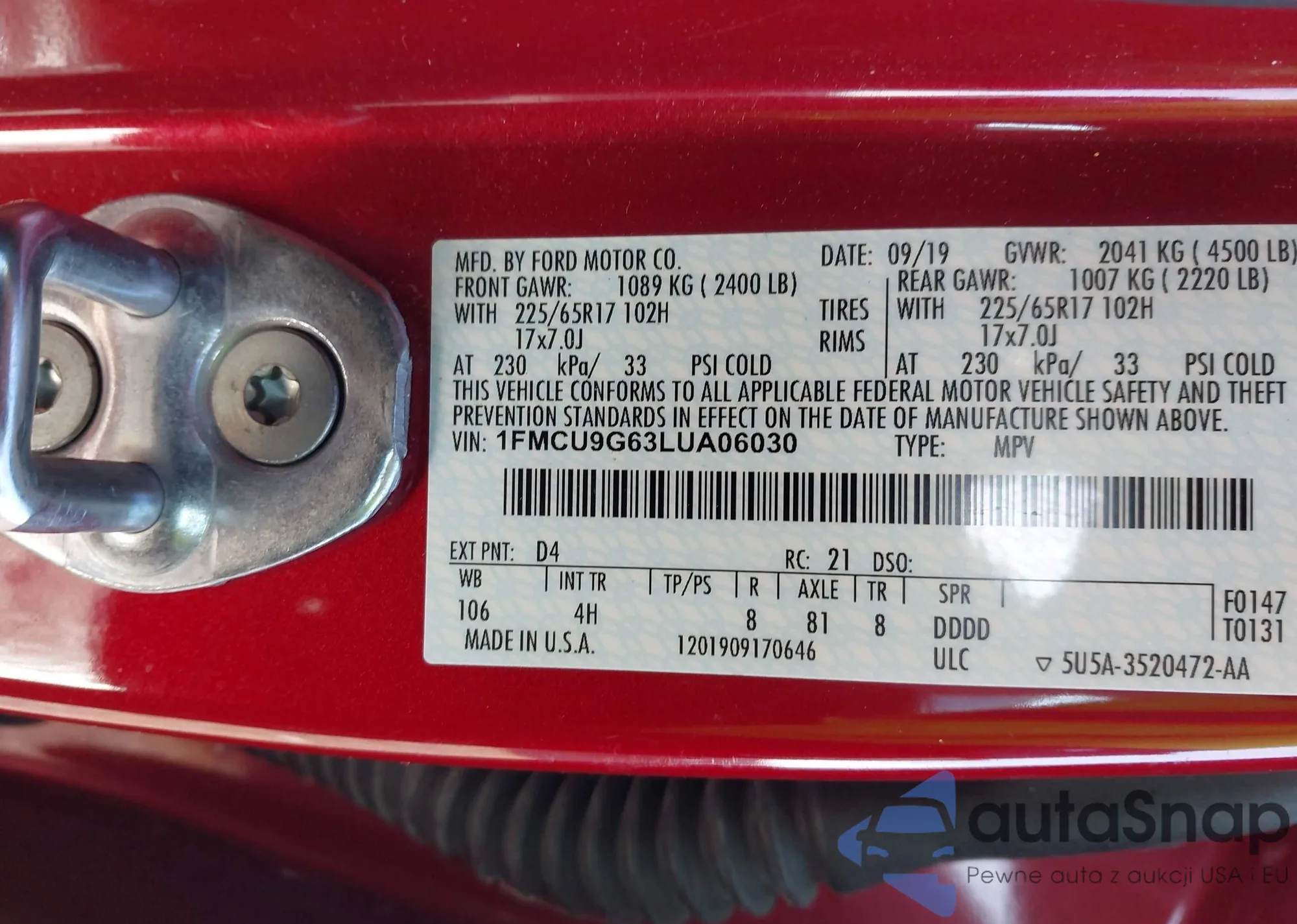VIN: 1FMCU9G63LUA06030