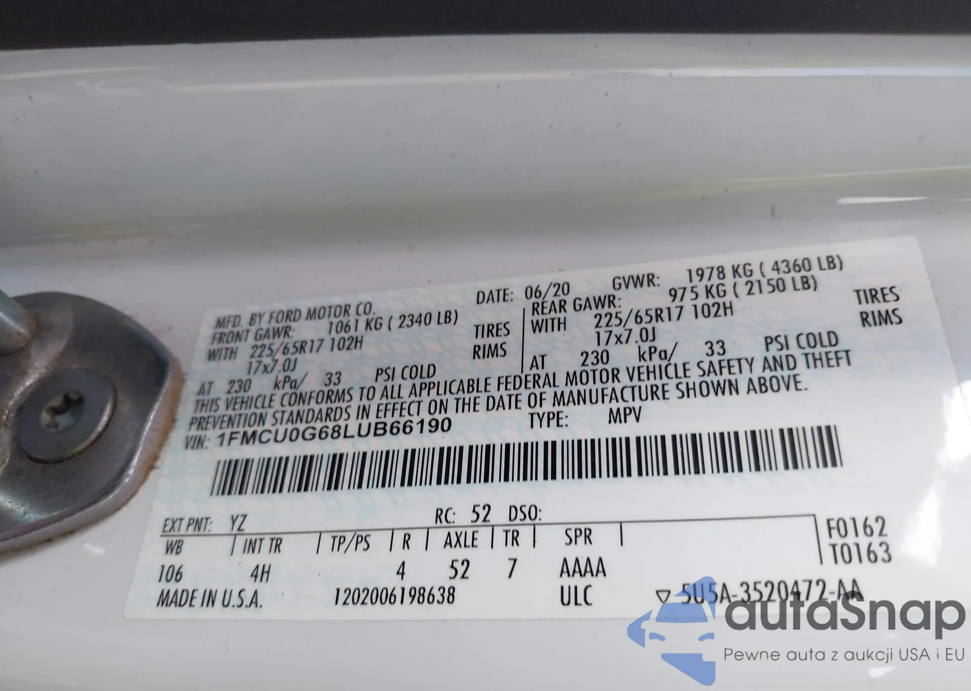 VIN: 1FMCU0G68LUB66190