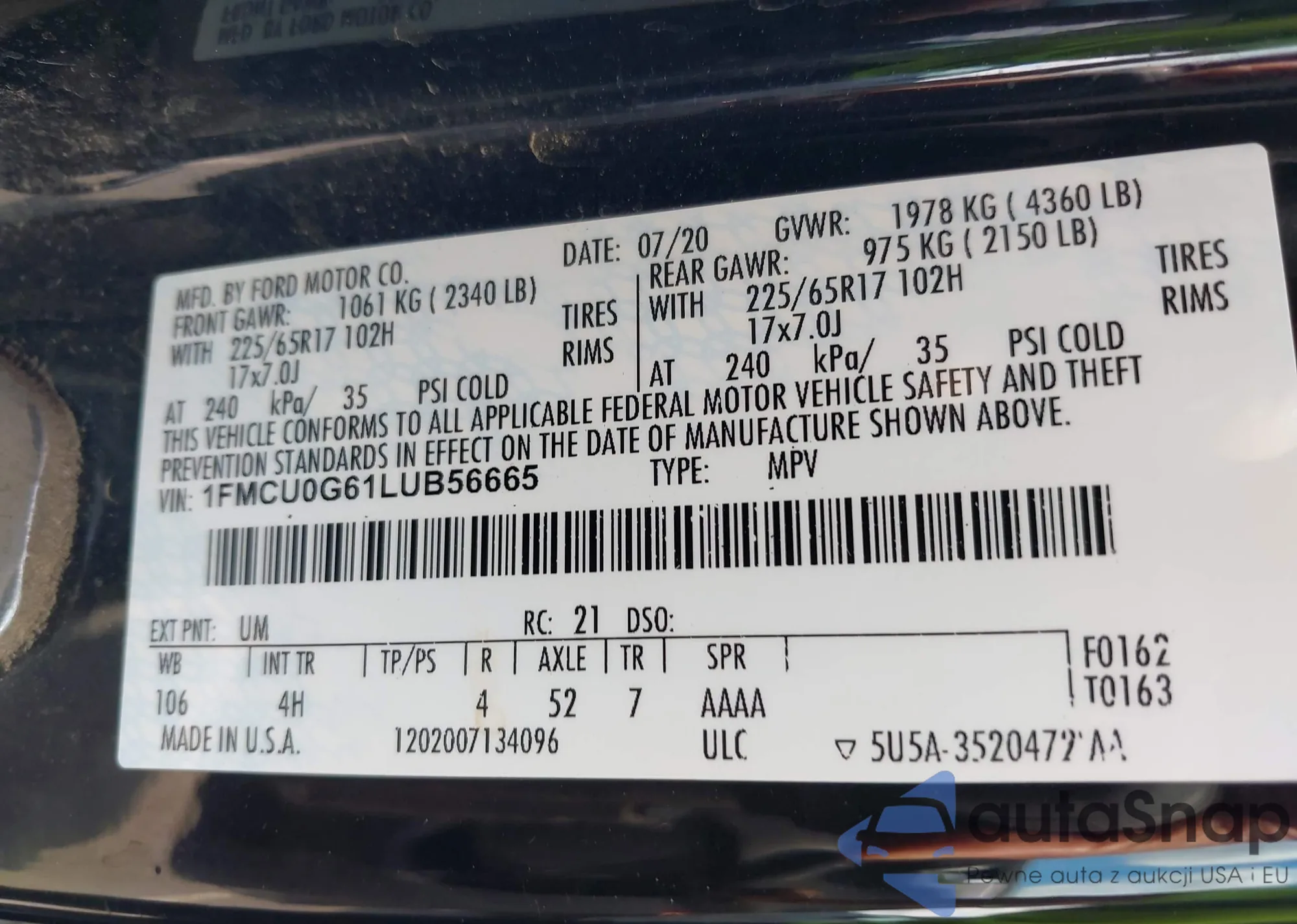 VIN: 1FMCU0G61LUB56665