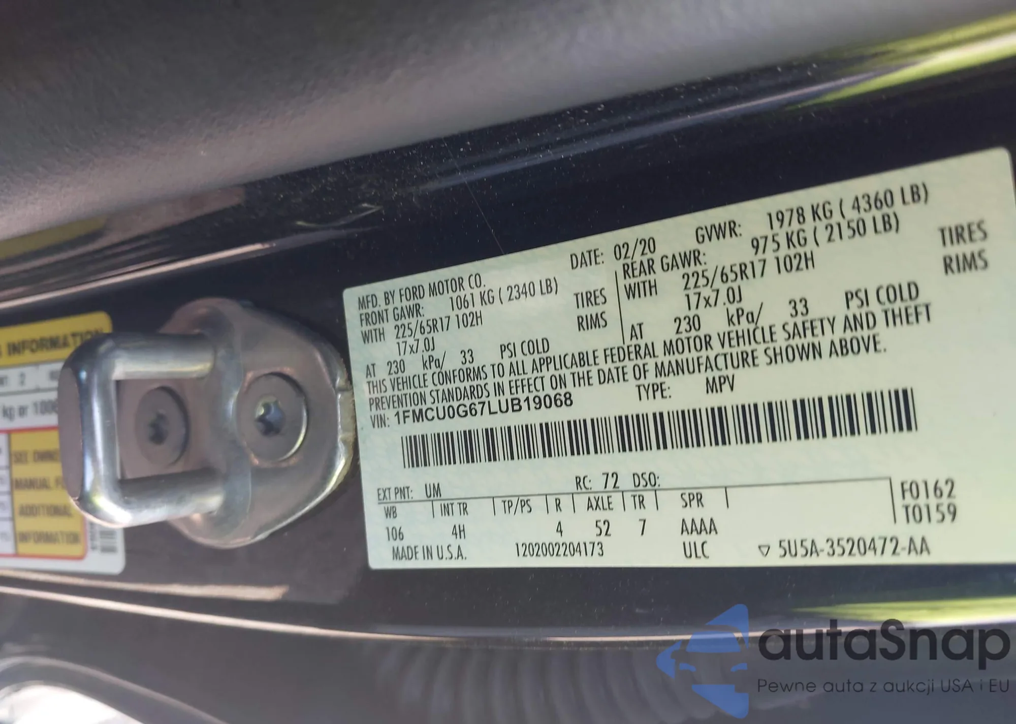VIN: 1FMCU0G67LUB19068