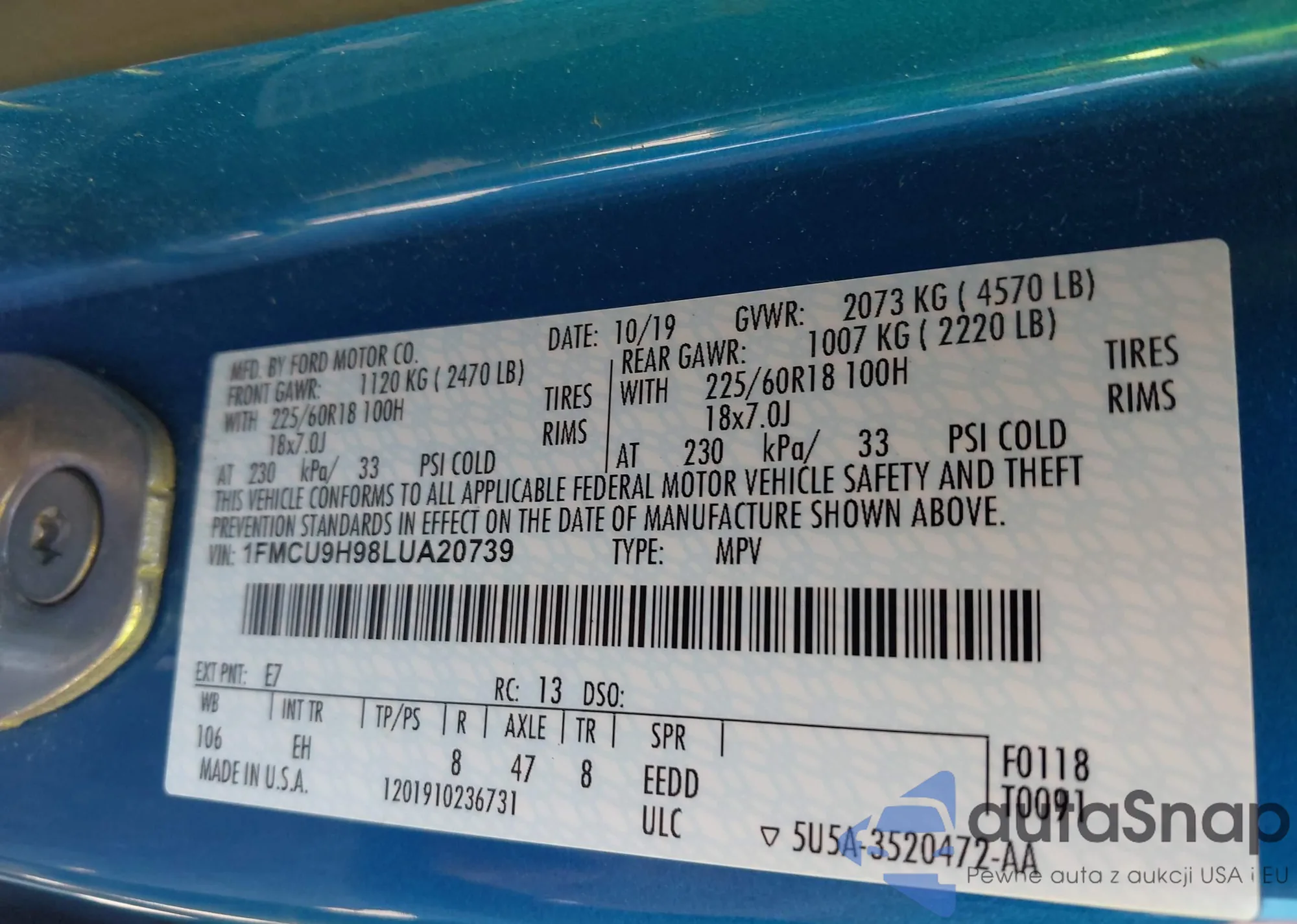 VIN: 1FMCU9H98LUA20739