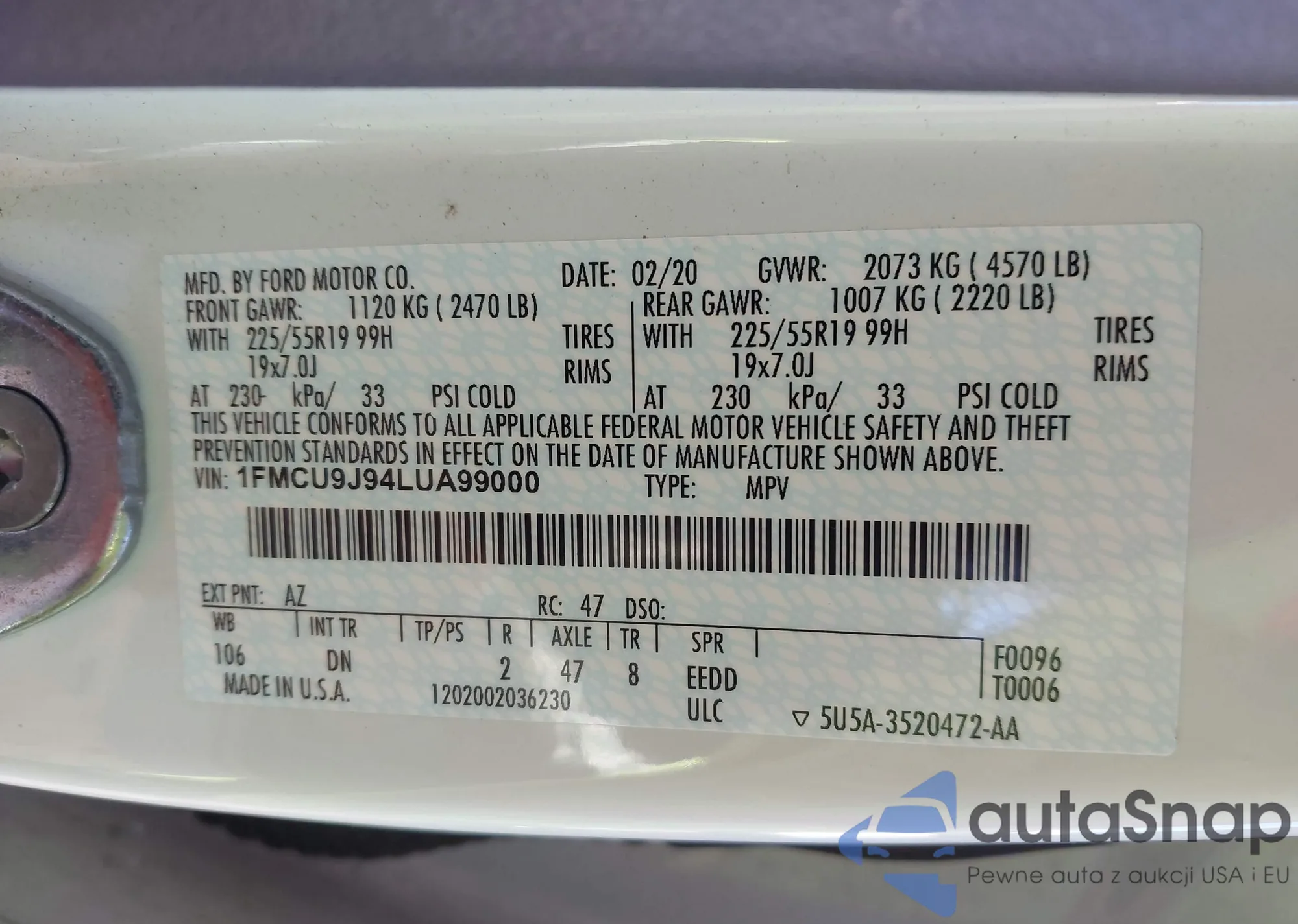 VIN: 1FMCU9J94LUA99000