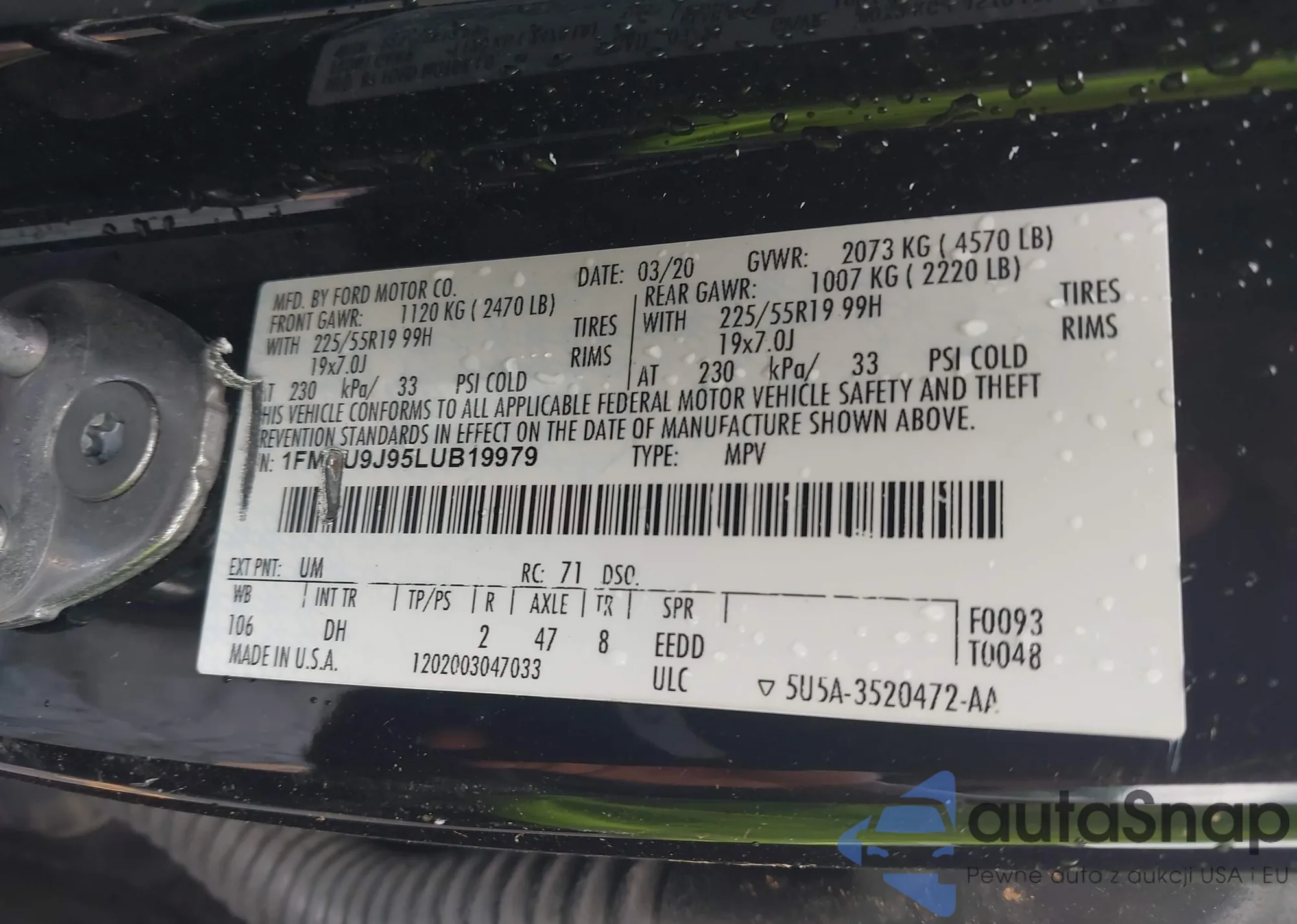 VIN: 1FMCU9J95LUB19979