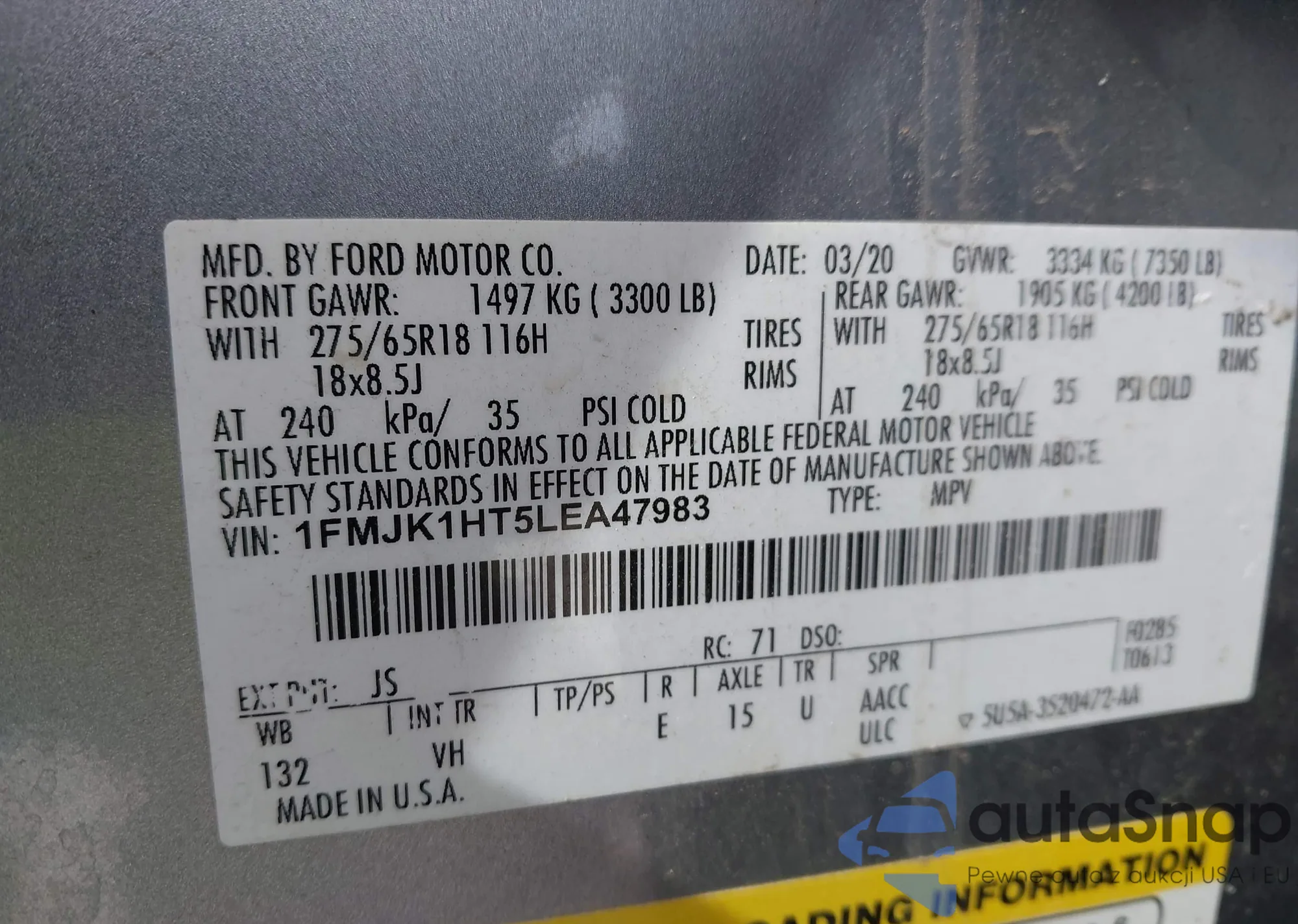 VIN: 1FMJK1HT5LEA47983