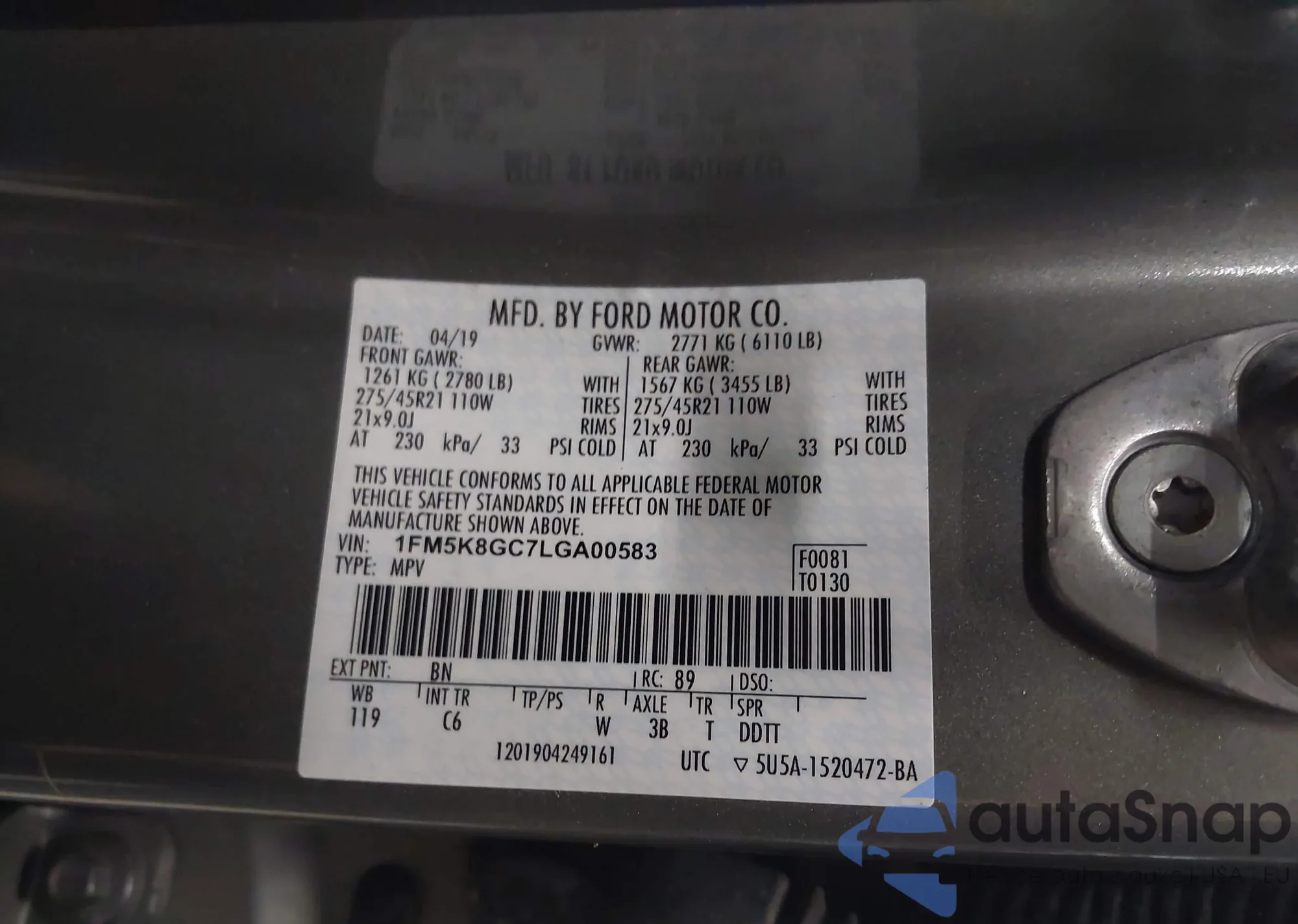 VIN: 1FM5K8GC7LGA00583