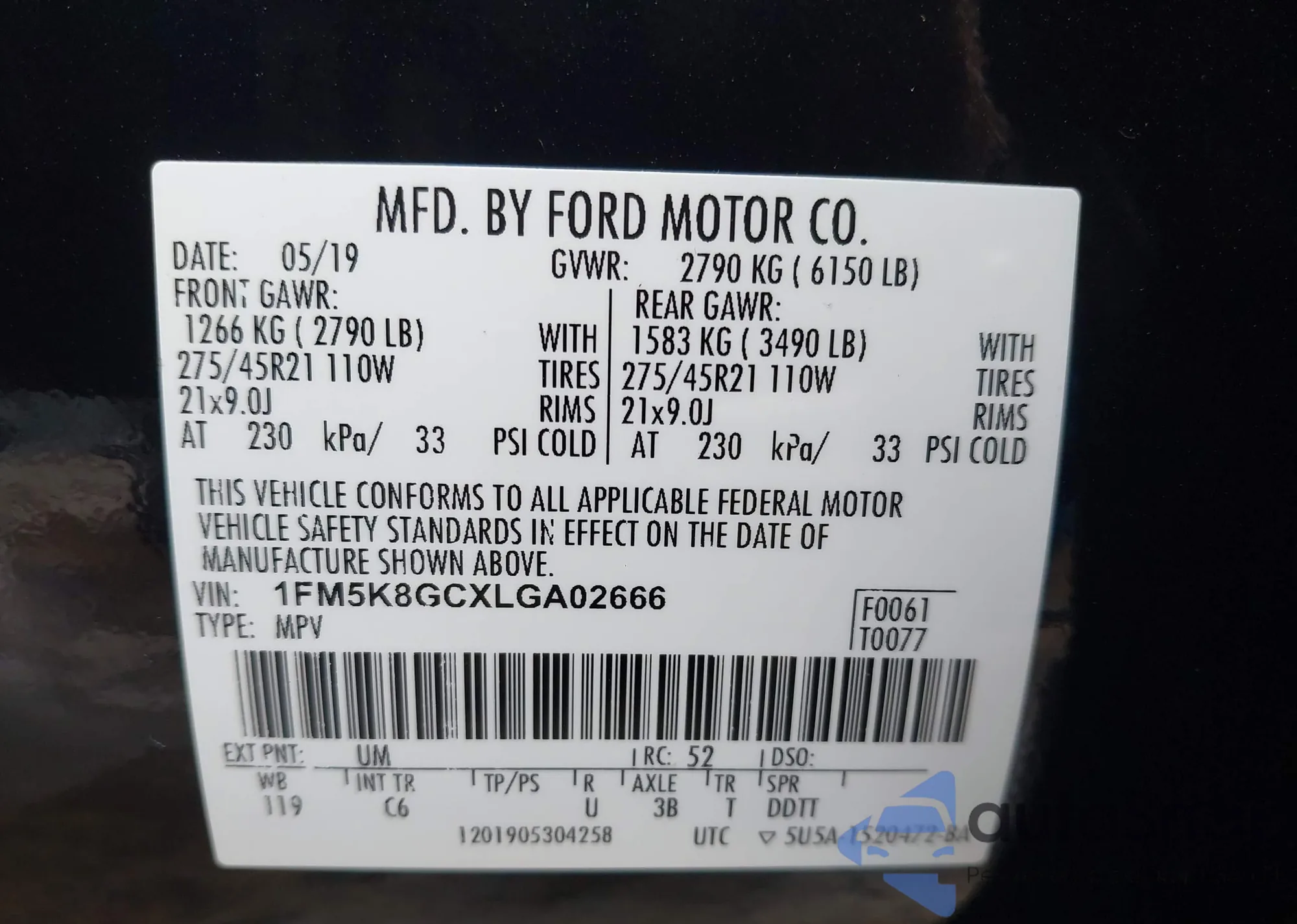 VIN: 1FM5K8GCXLGA02666