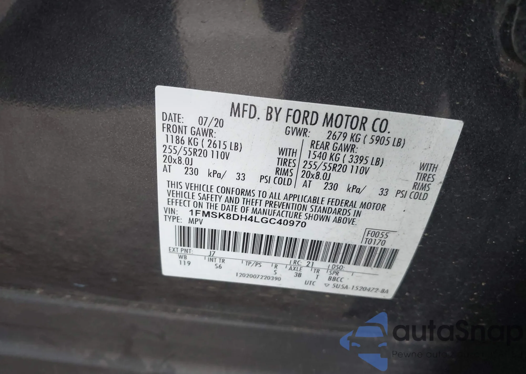 • VIN: 1FMSK8DH4LGC40970
