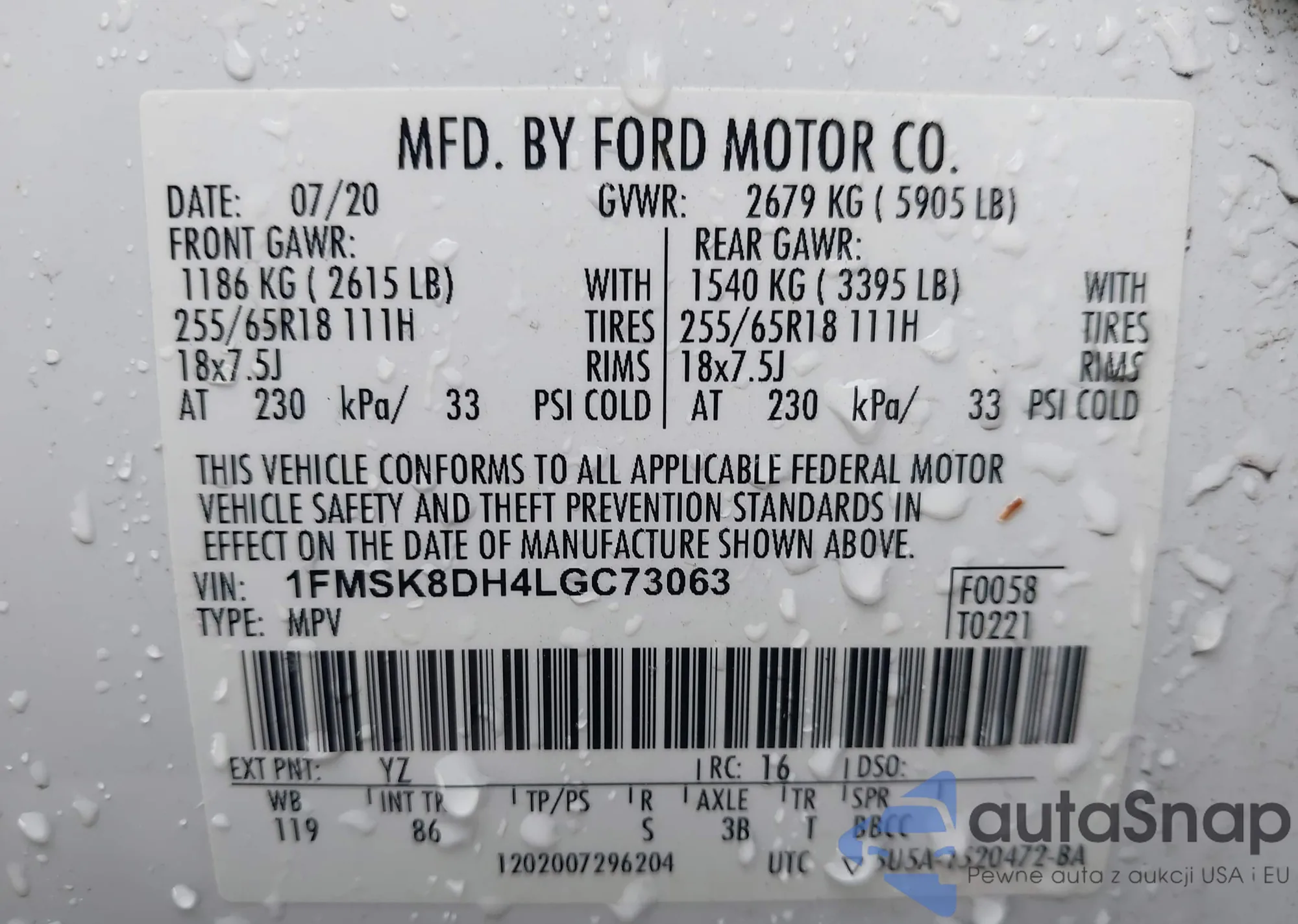 VIN: 1FMSK8DH4LGC73063