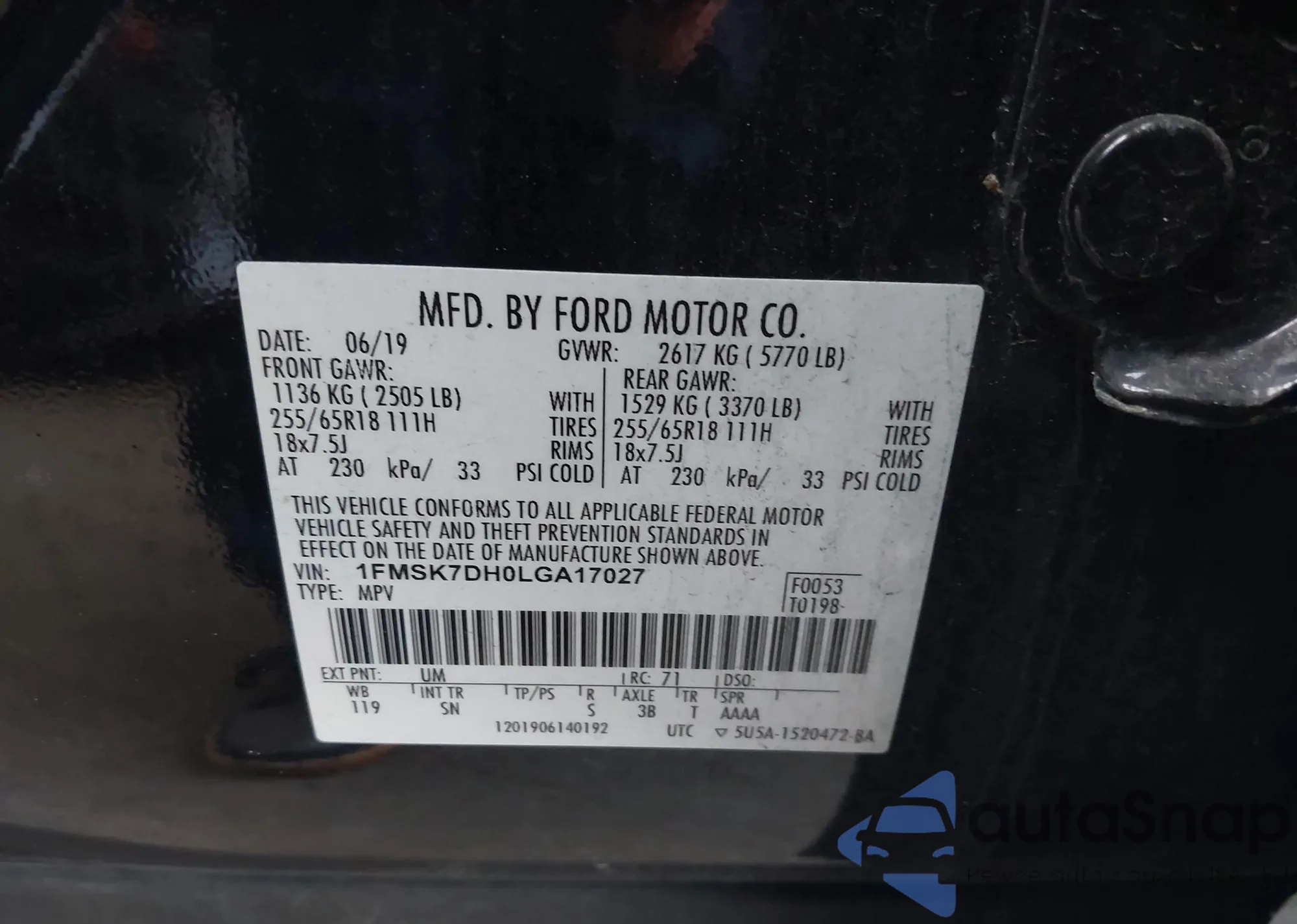 The car Ford Explorer 2020 (VIN 1FMSK7DH0LGA17027) has not been auctioned before. The documents are clean, and the mileage matches or is below the market average. Sold by an insurance company – we recommend purchase. Delivery to the port will take approx. 6–8 weeks.
