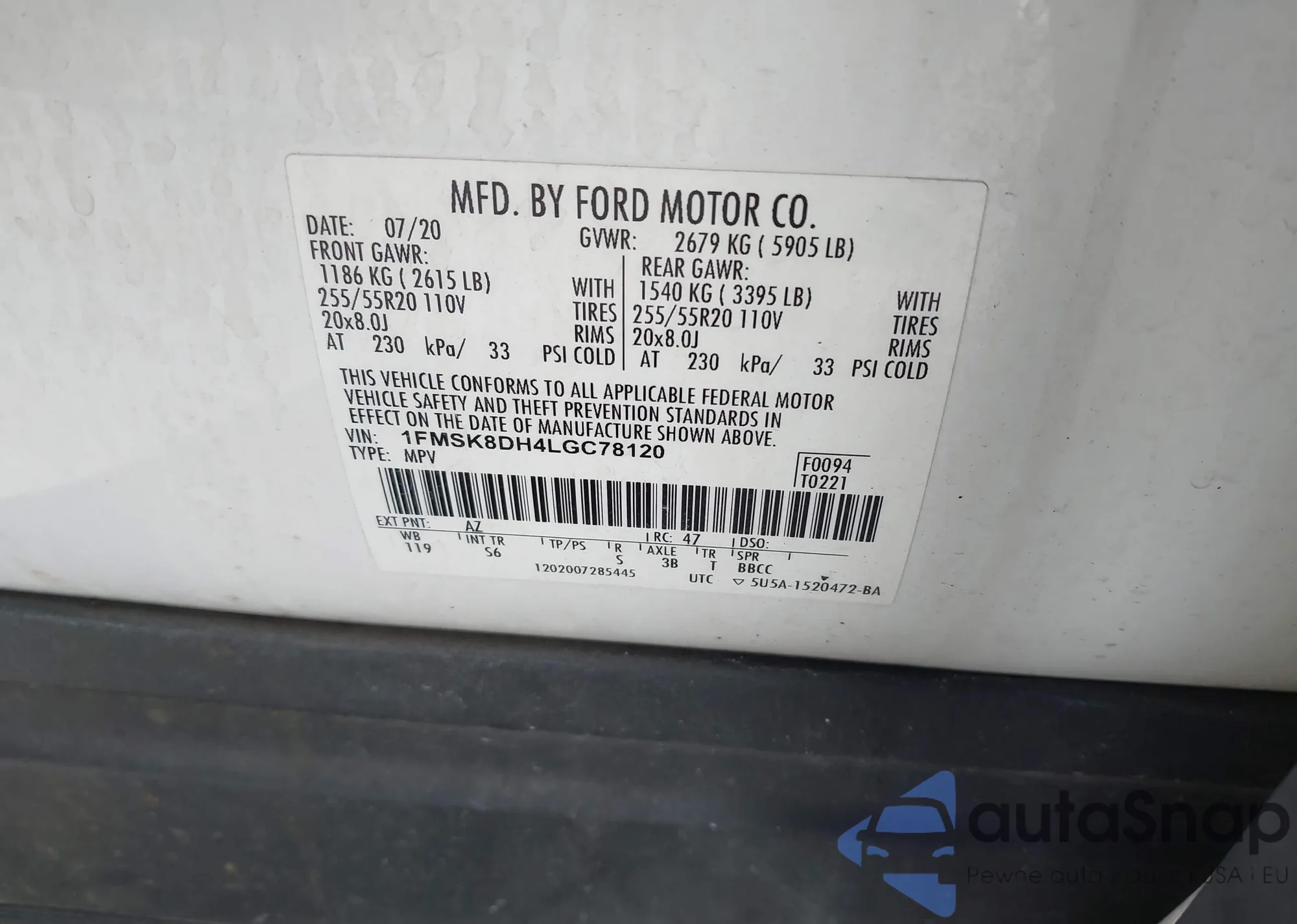 The car Ford Explorer 2020 (VIN 1FMSK8DH4LGC78120) has not been auctioned before. The documents are clean, and the mileage matches or is below the market average. Sold by an insurance company – we recommend purchase. Delivery to the port will take approx. 6–8 weeks.