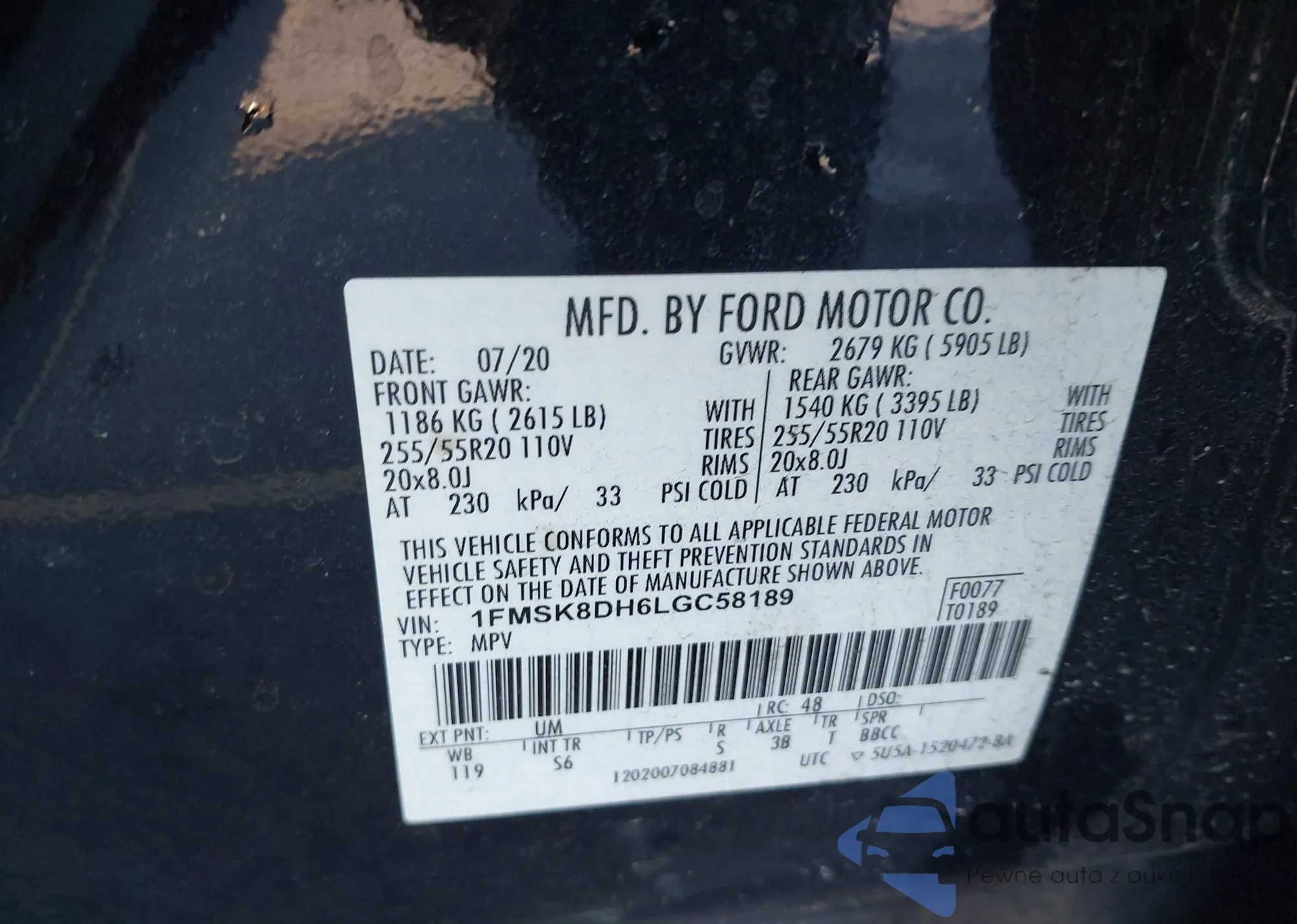The car Ford Explorer 2020 (VIN 1FMSK8DH6LGC58189) has not been auctioned before. The documents are clean, and the mileage matches or is below the market average. Sold by an insurance company – we recommend purchase. Delivery to the port will take approx. 6–8 weeks.