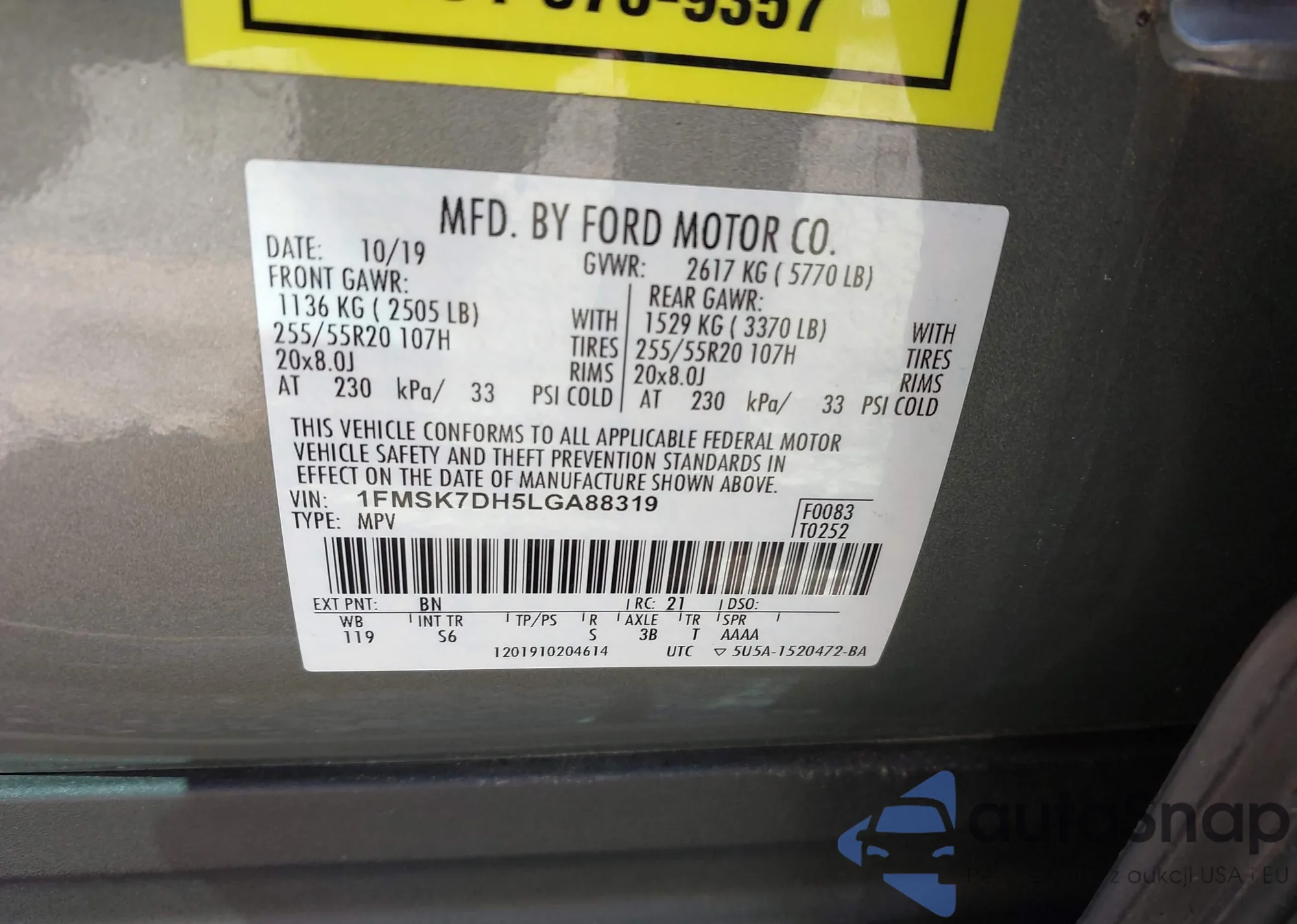 VIN: 1FMSK7DH5LGA88319